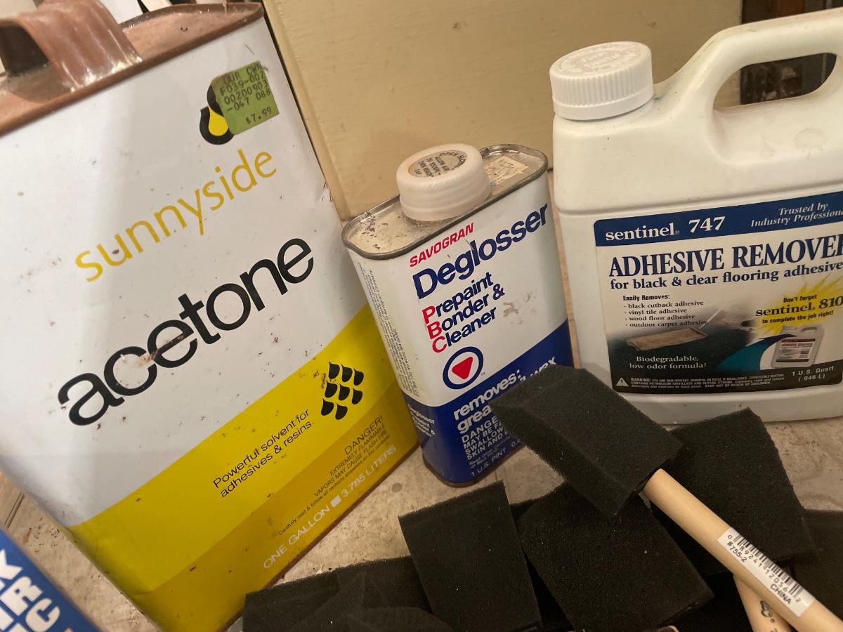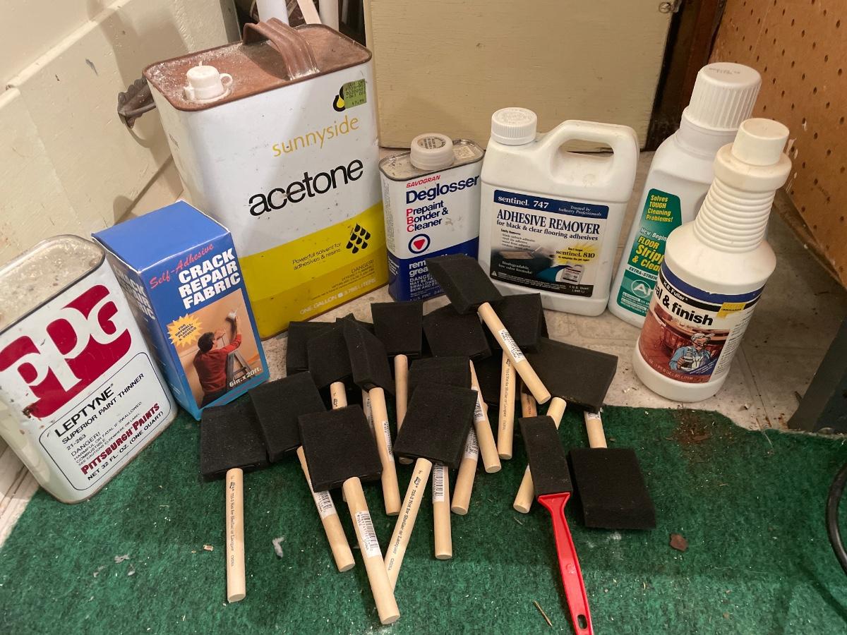 Painting remover chemicals and paint brushes