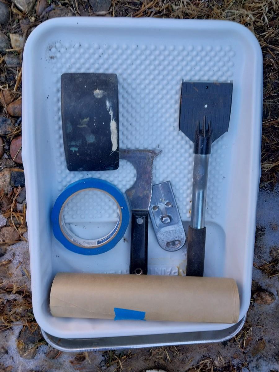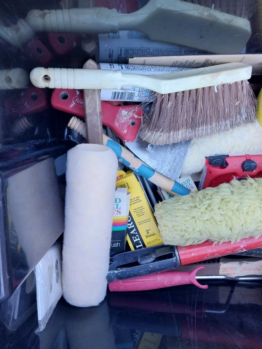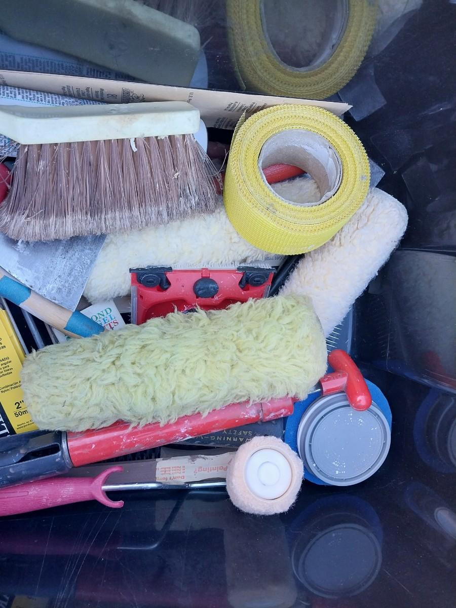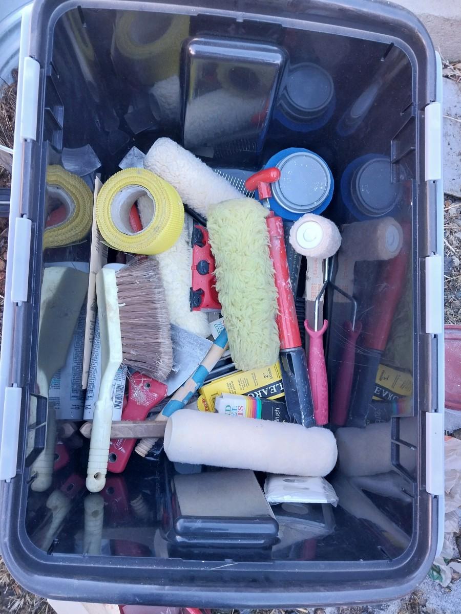PAINTING SUPPLIES AND A TOTE TO STORE THEM