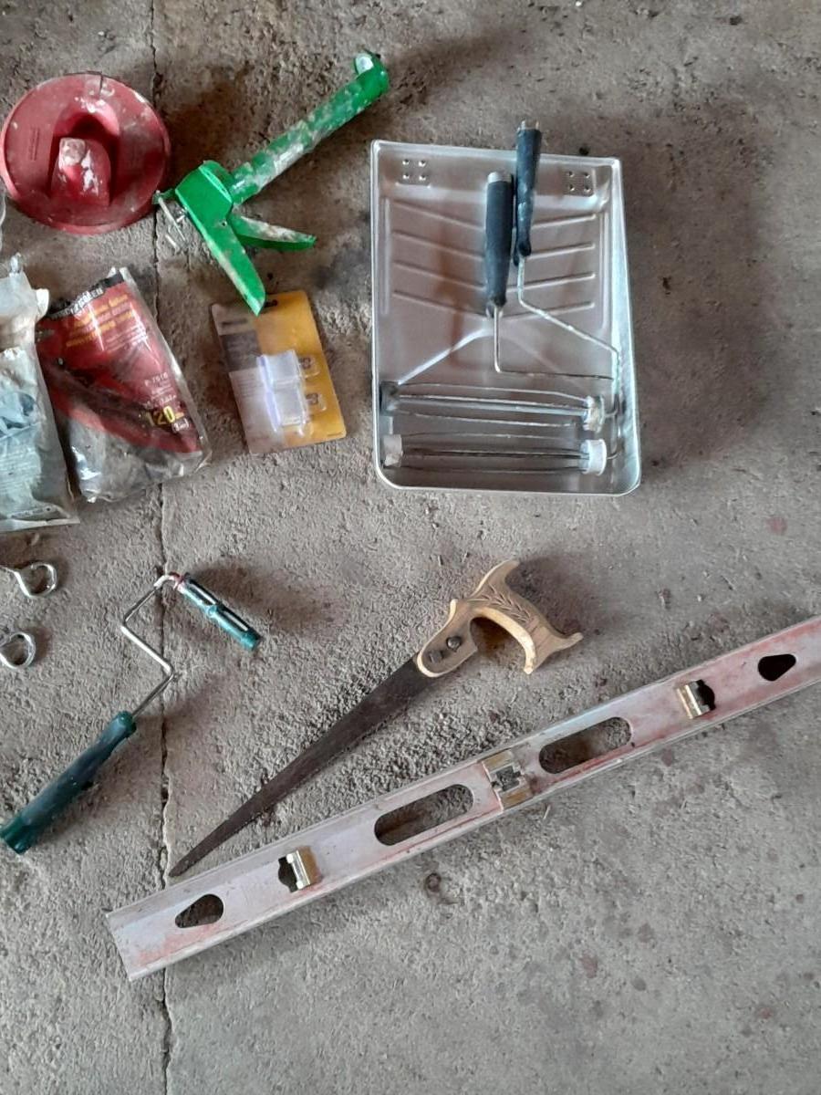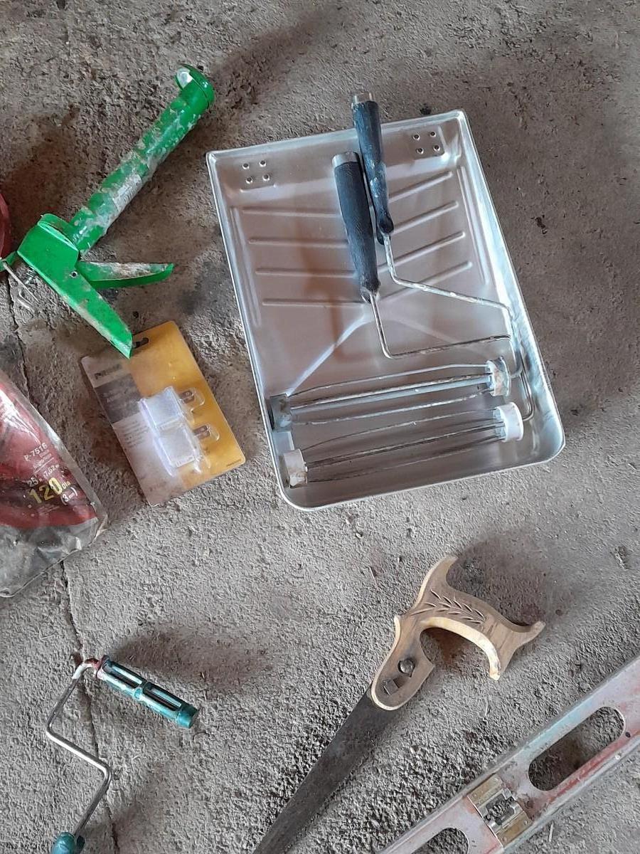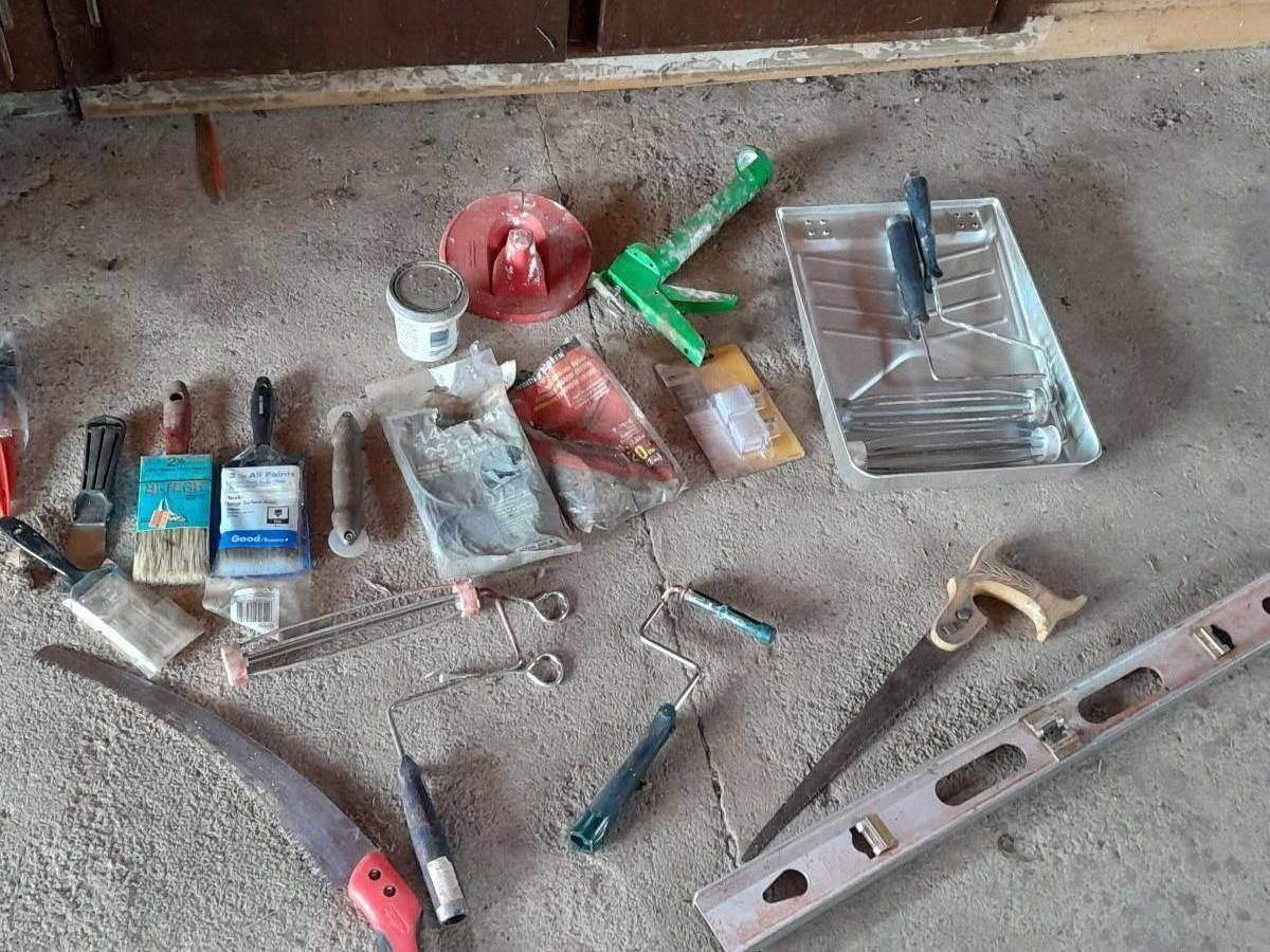 PAINTING TOOLS, SAWS, LEVEL, BRUSHES, ROLLERS, CAULKING GUN AND MORE