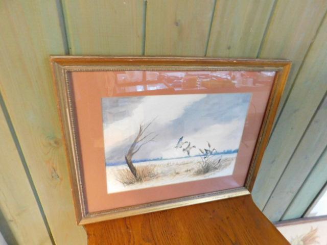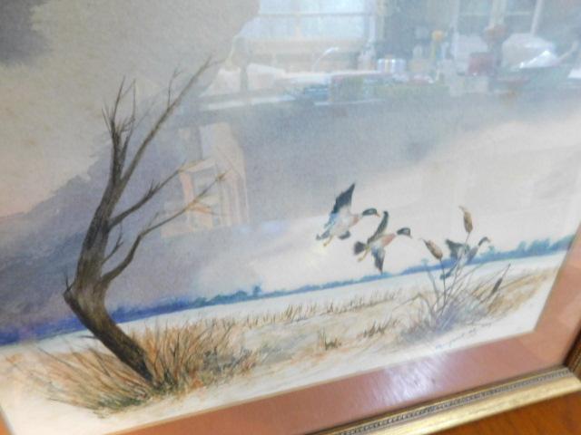 Professionally framed and matted duck themed painting. Measures approximately 19 1/2 by 16 inches.