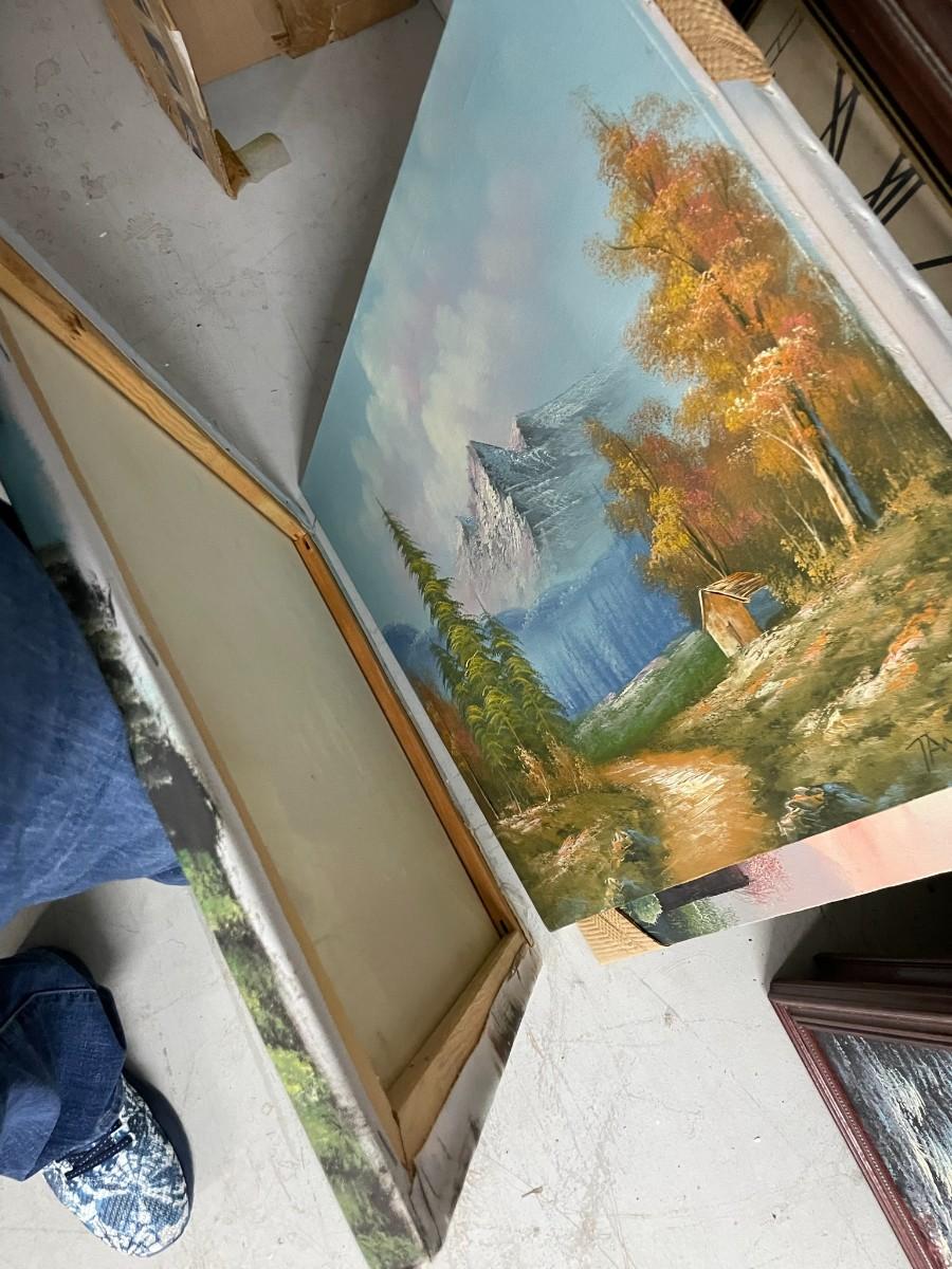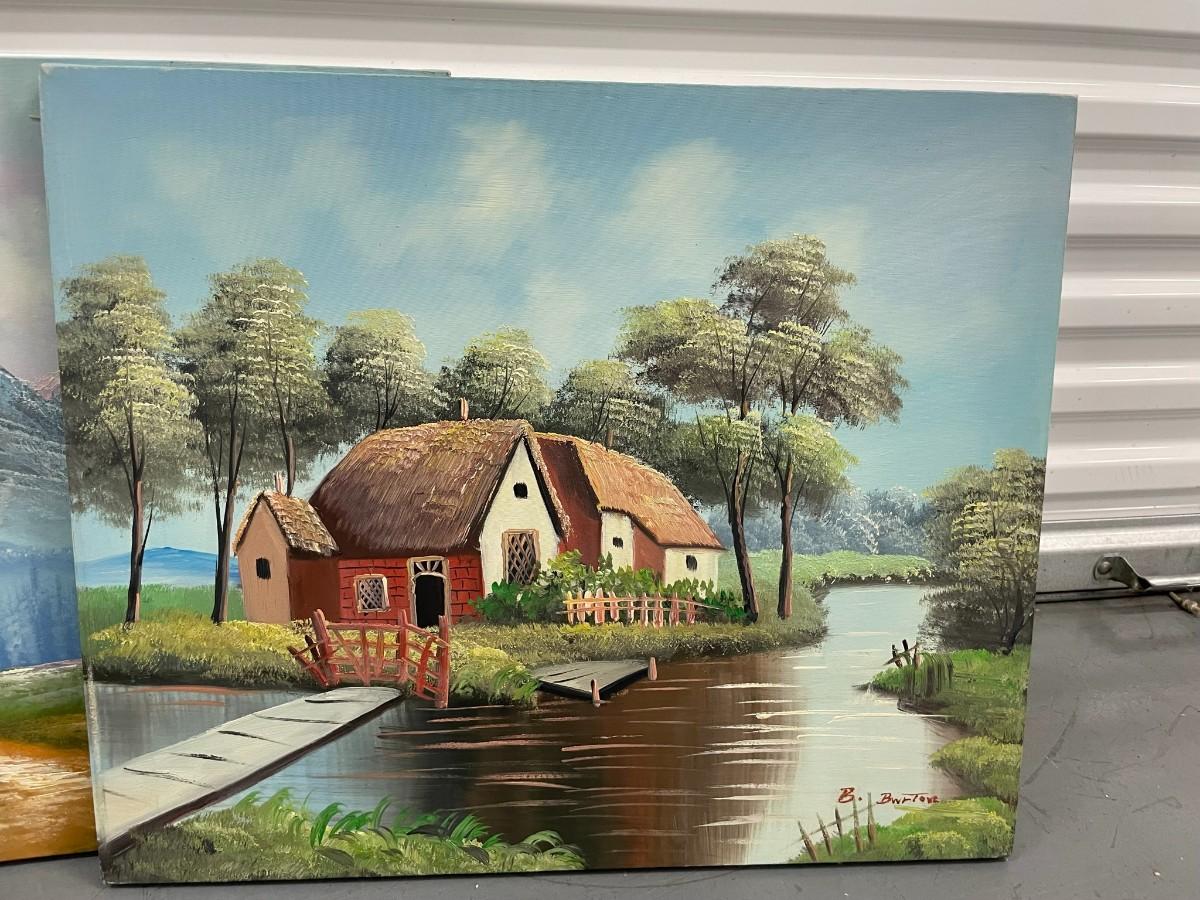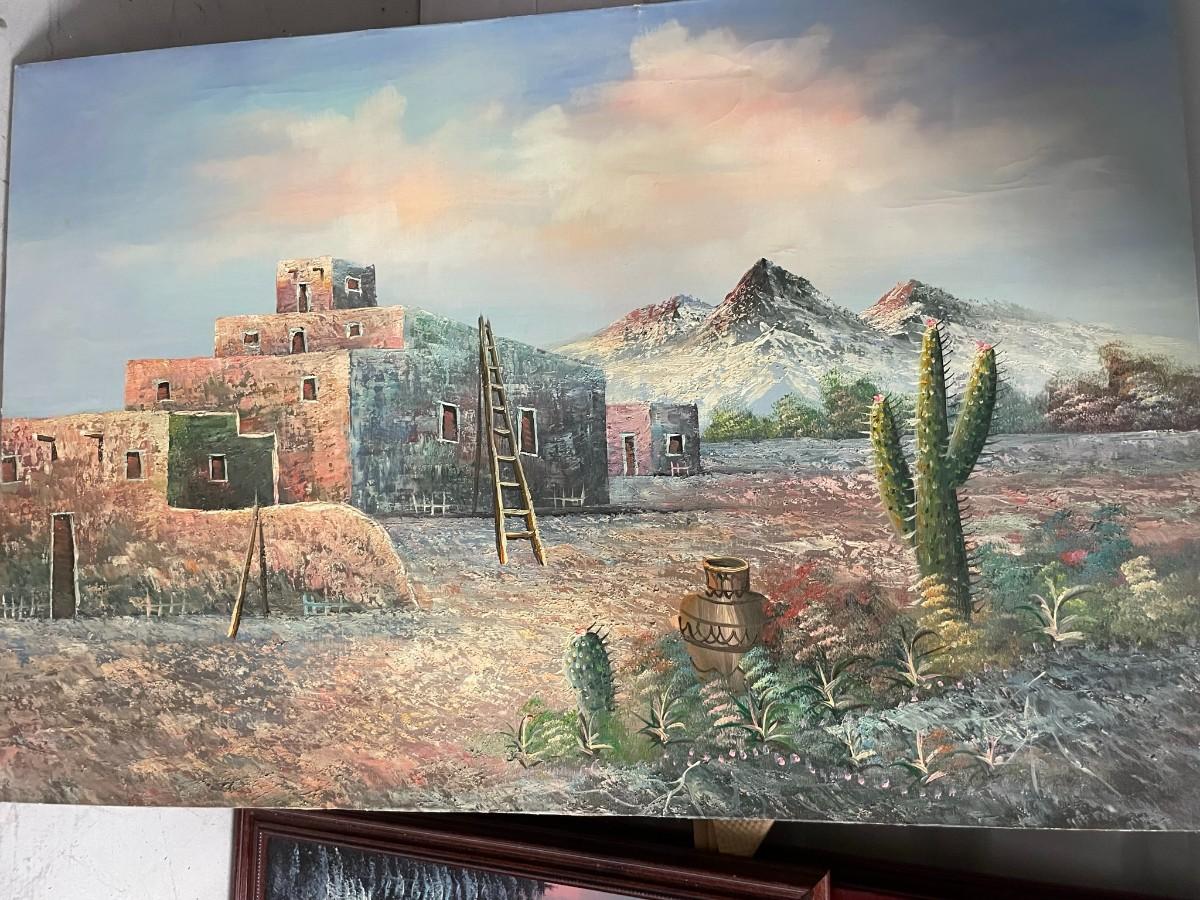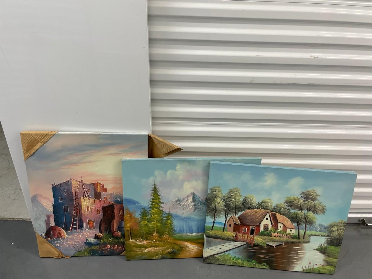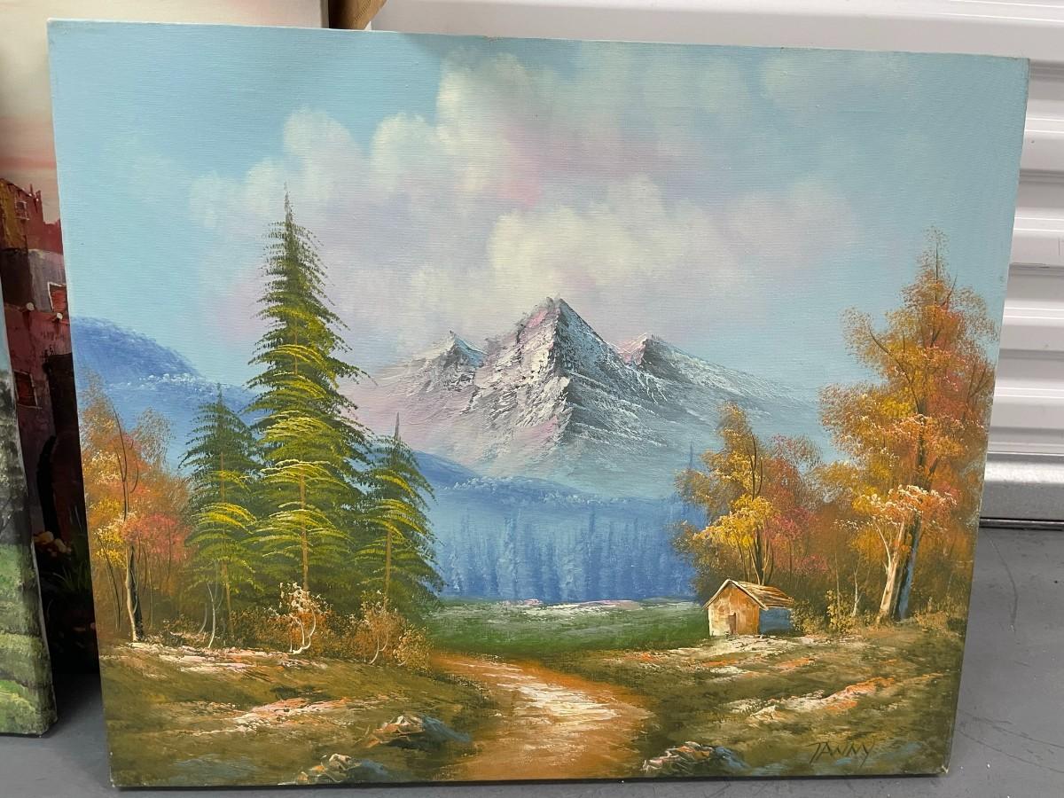 Set of 4 Paintings on Canvas, Mountain Scene 24X24, Water Scene 24X24, Dessert Scene 24X36, 2nd Dessert Scene 24X36