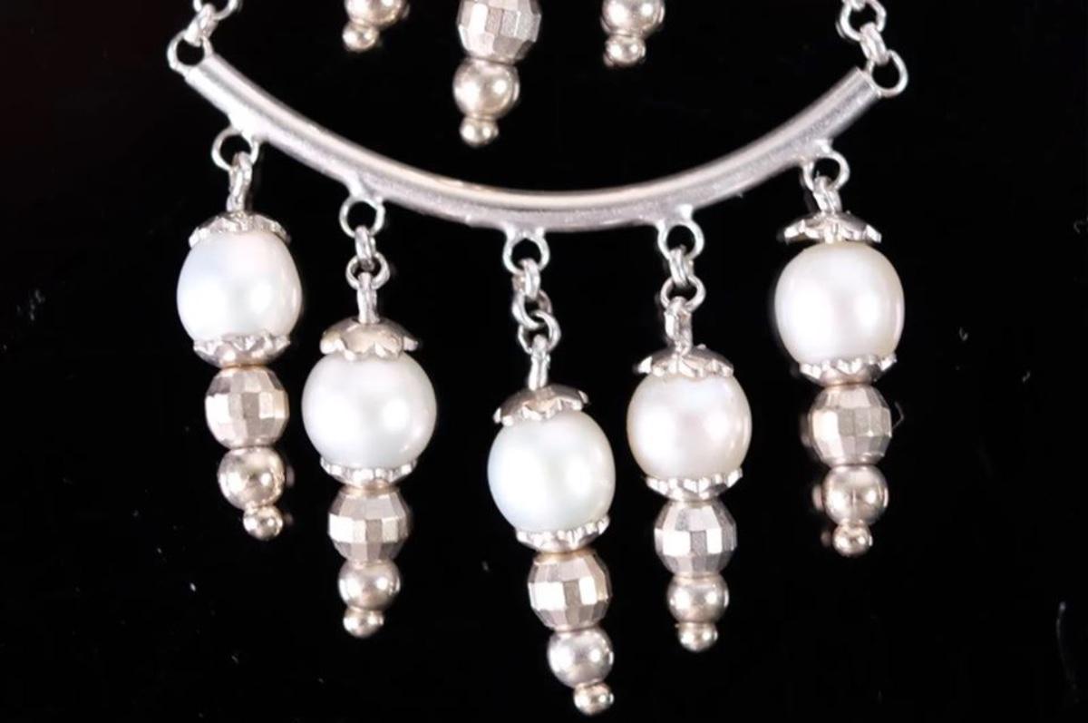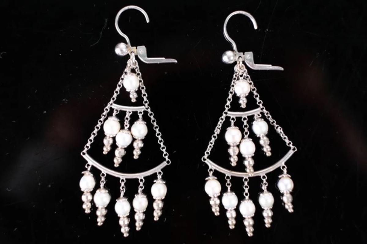 Pair, 14K White Gold & Pearl Chandelier Earrings
