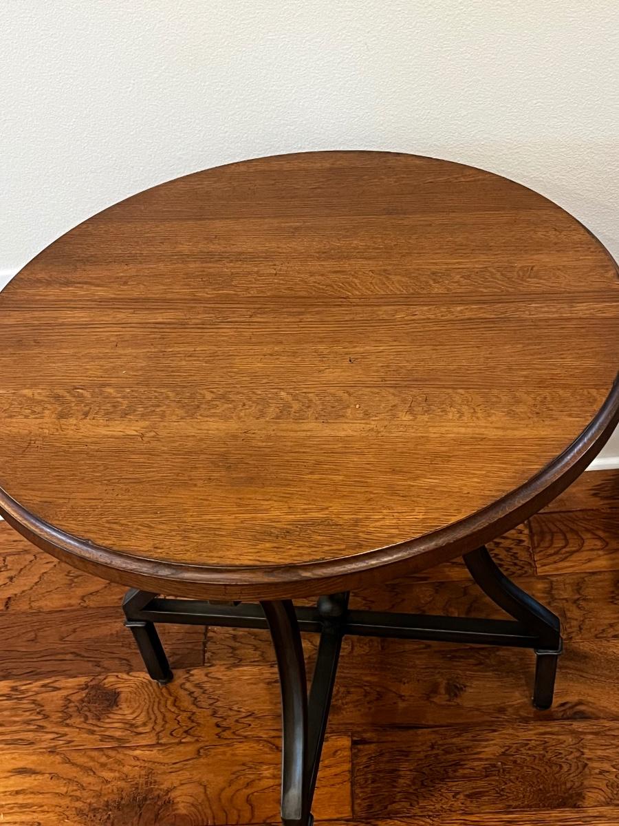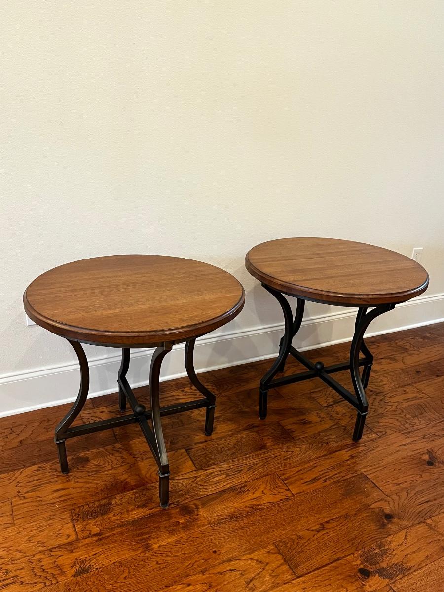Pair (2) ~ Solid Wood & Metal Round Side Tables