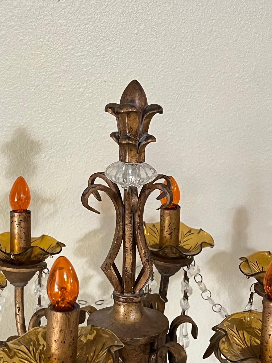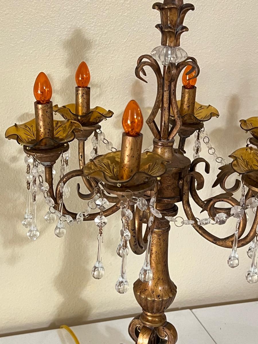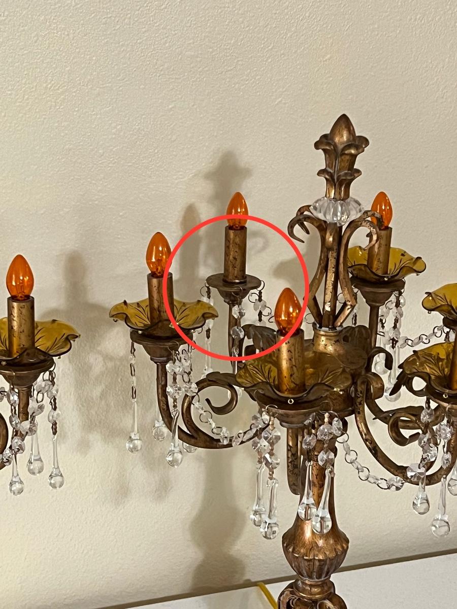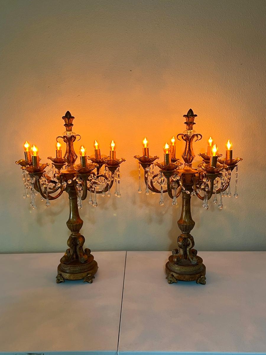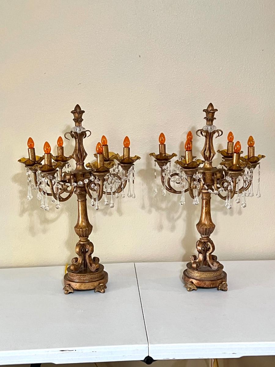 Pair (2) ~ Antiqued Gold Six (6) Lighted Candelabras