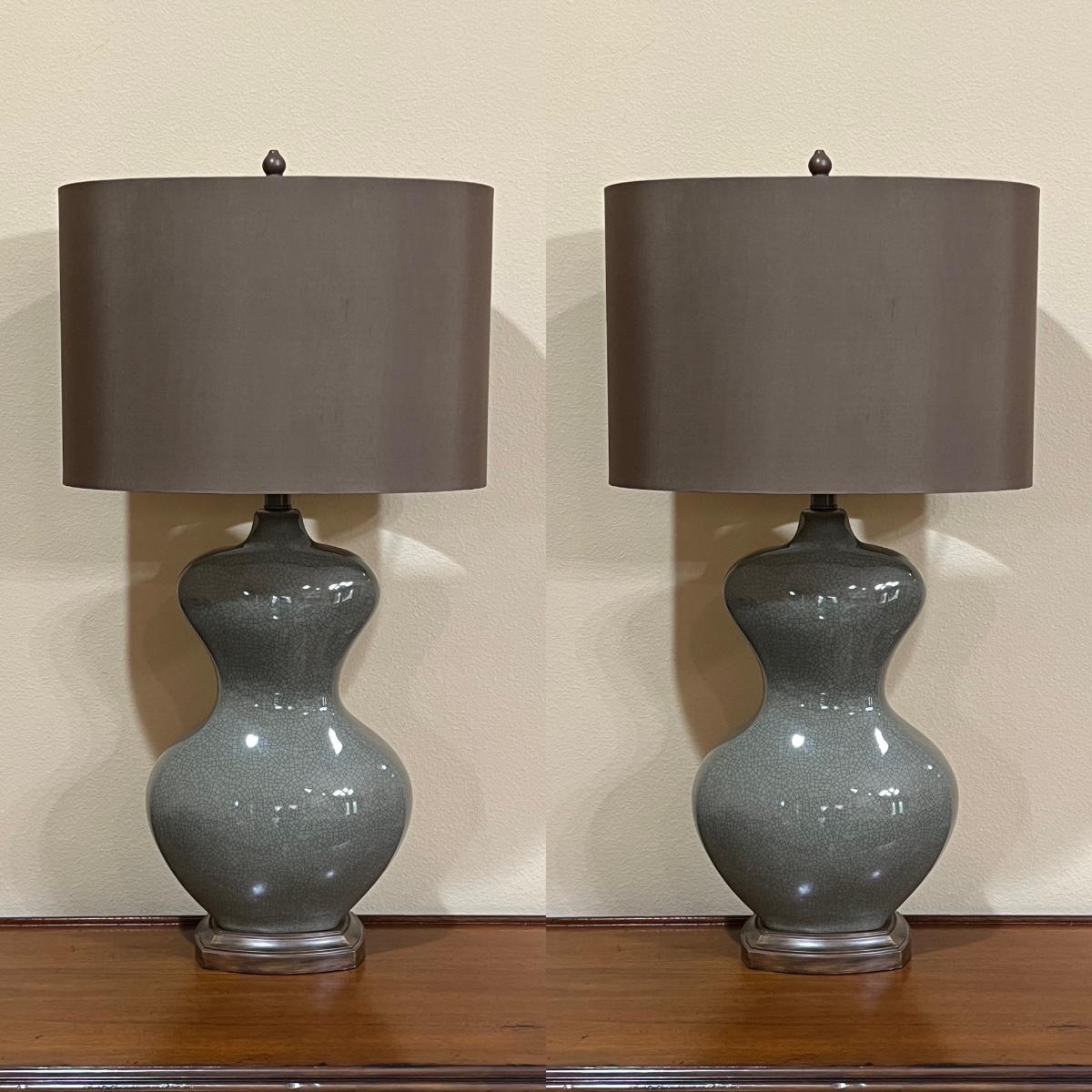 Pair (2) ~ Ceramic Crackle Table Lamps