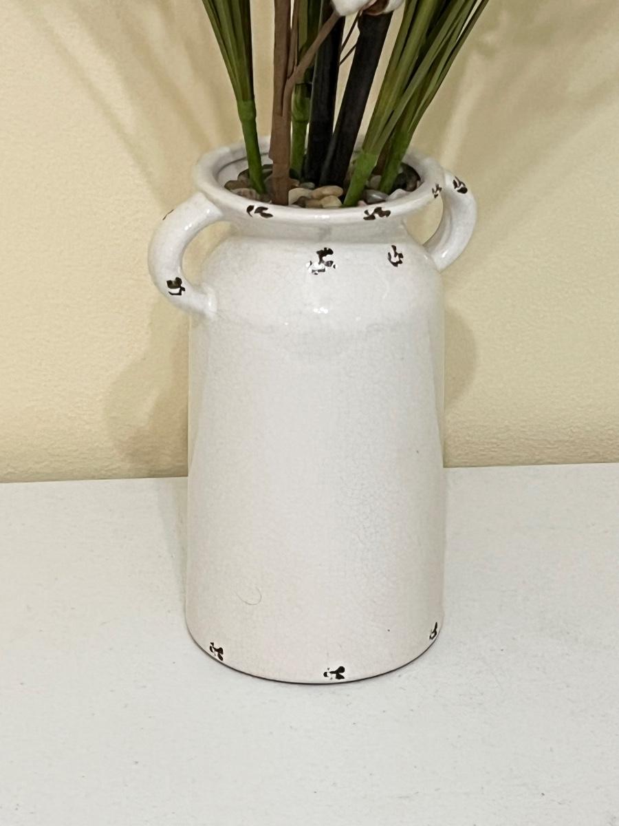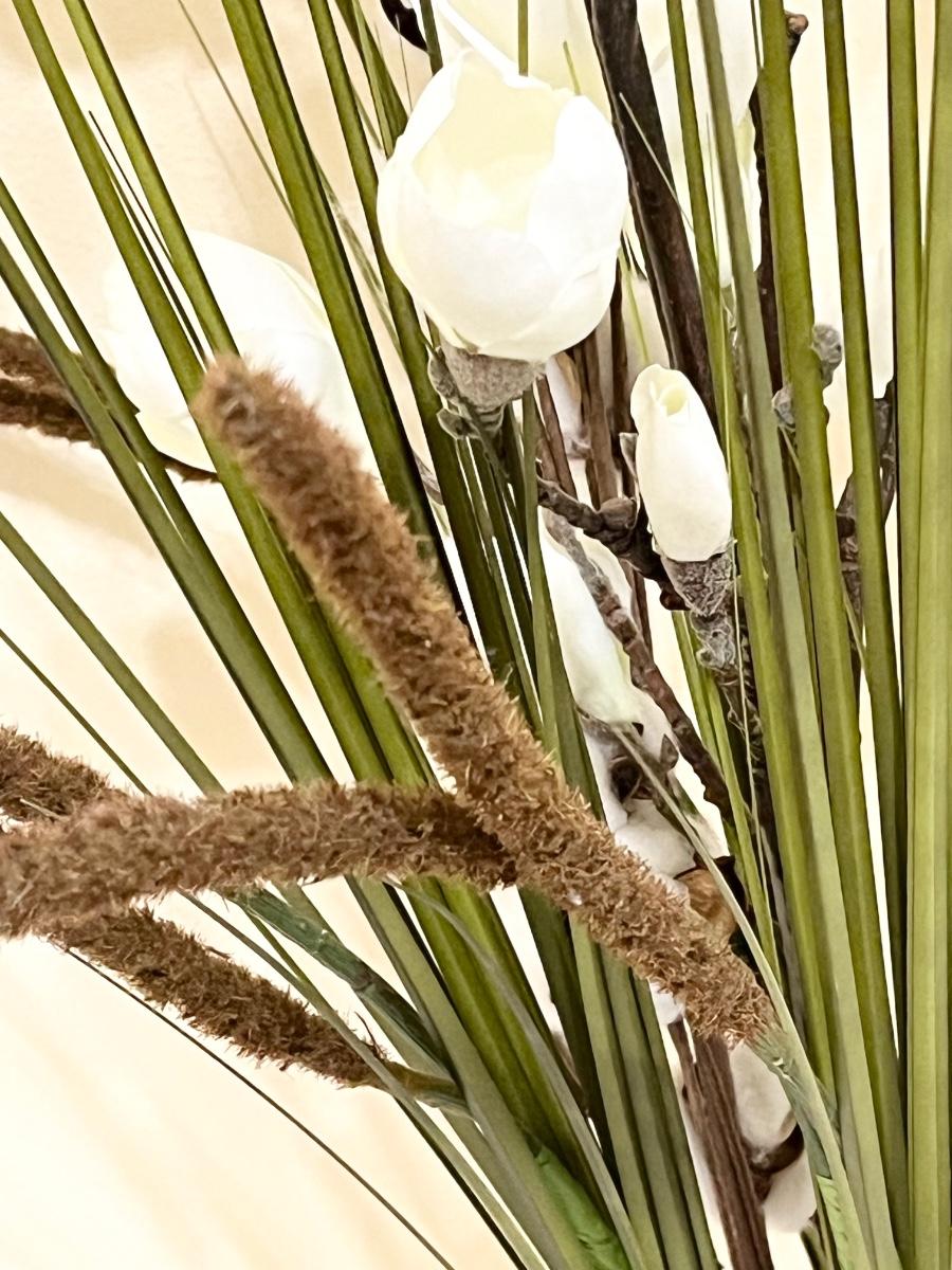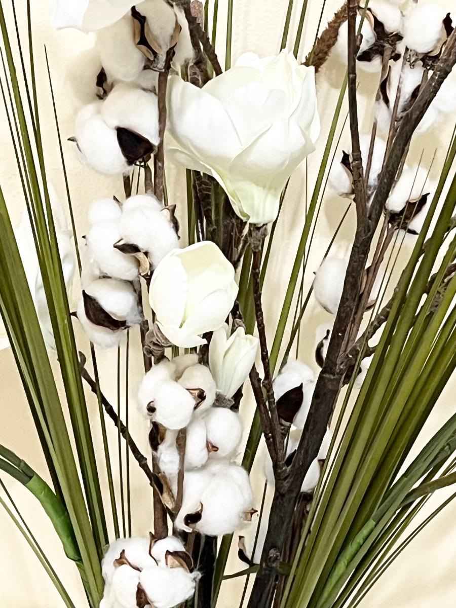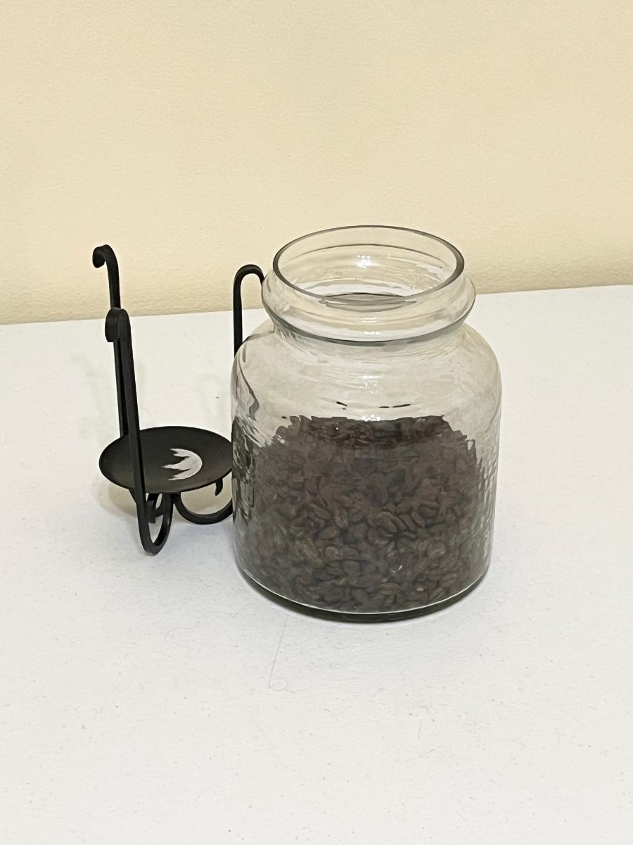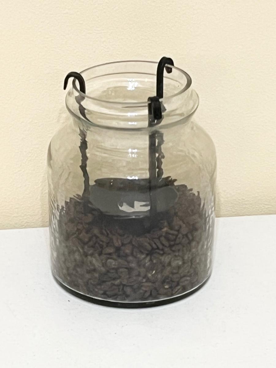 Vase with florals approx. 37” H ~ Candle holder has coffee beans = 8” H x 6.5” round