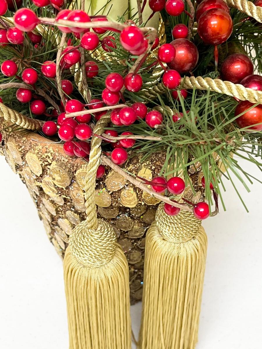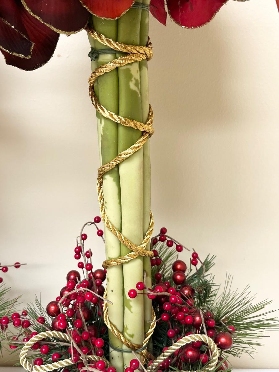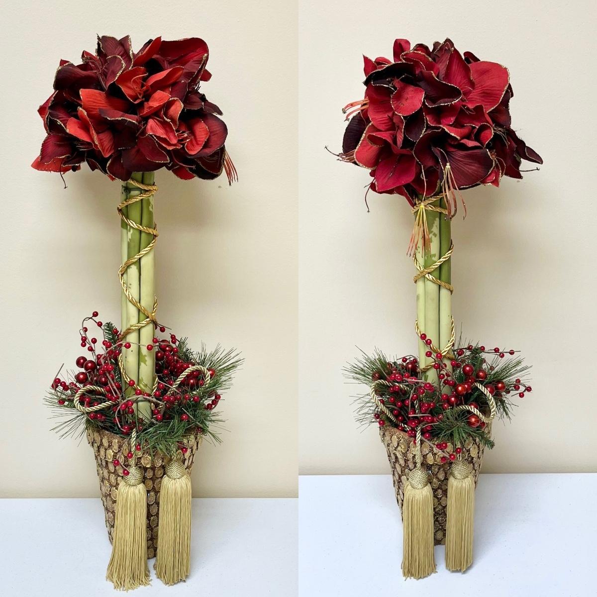 Pair (2) ~ Christmas Poinsetta Topiaries ~ Gold Pot