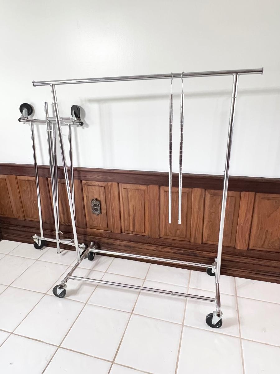 Pair (2) Adjustable / Extendable Rolling Metal Clothes Racks