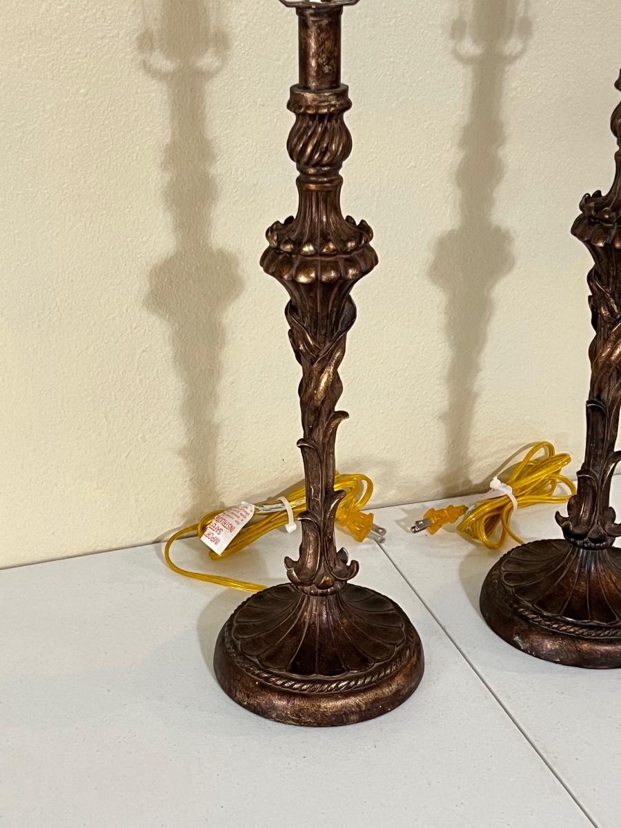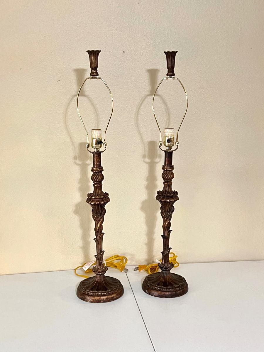 Made of a resin type material. Lamp shades not included. 31” H x 6” Round.