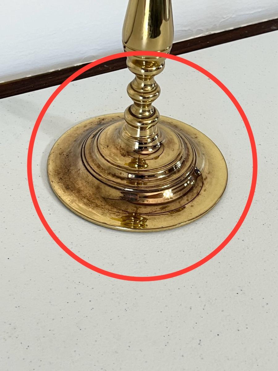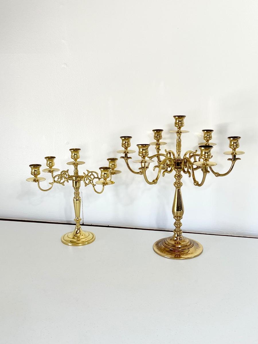 Larger candelabra has wear from age on the base, see photos ~ Larger 1 ~ 16” H x 14” Round ~ Shorter 1 = 12” H x 12” Round