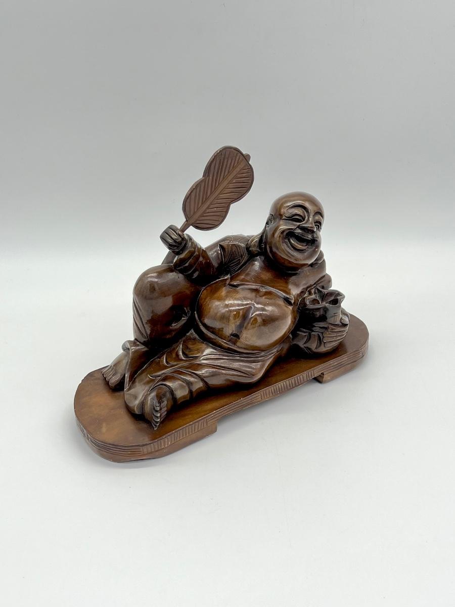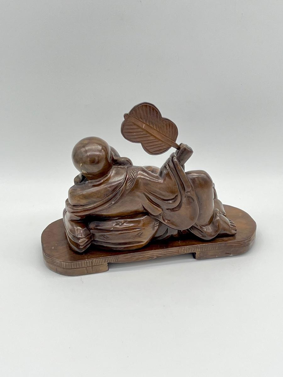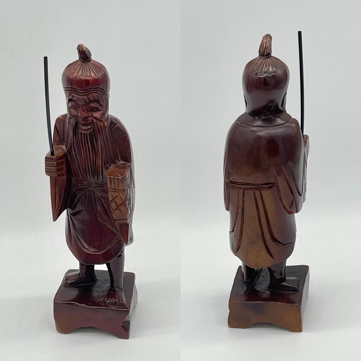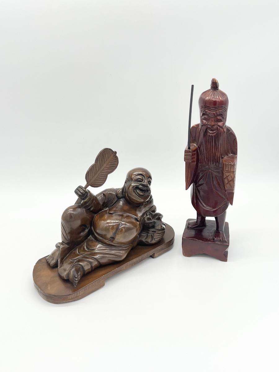 Pair (2) ~ Buddha & Asian Man Figurines ~ Carved Wood