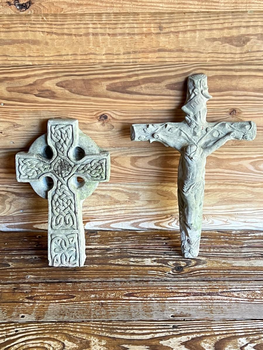Celtic cross = 18” H x 10.5” W x 3” D ~ Jesus on a cross = 23” H x 14” W x 3” D
