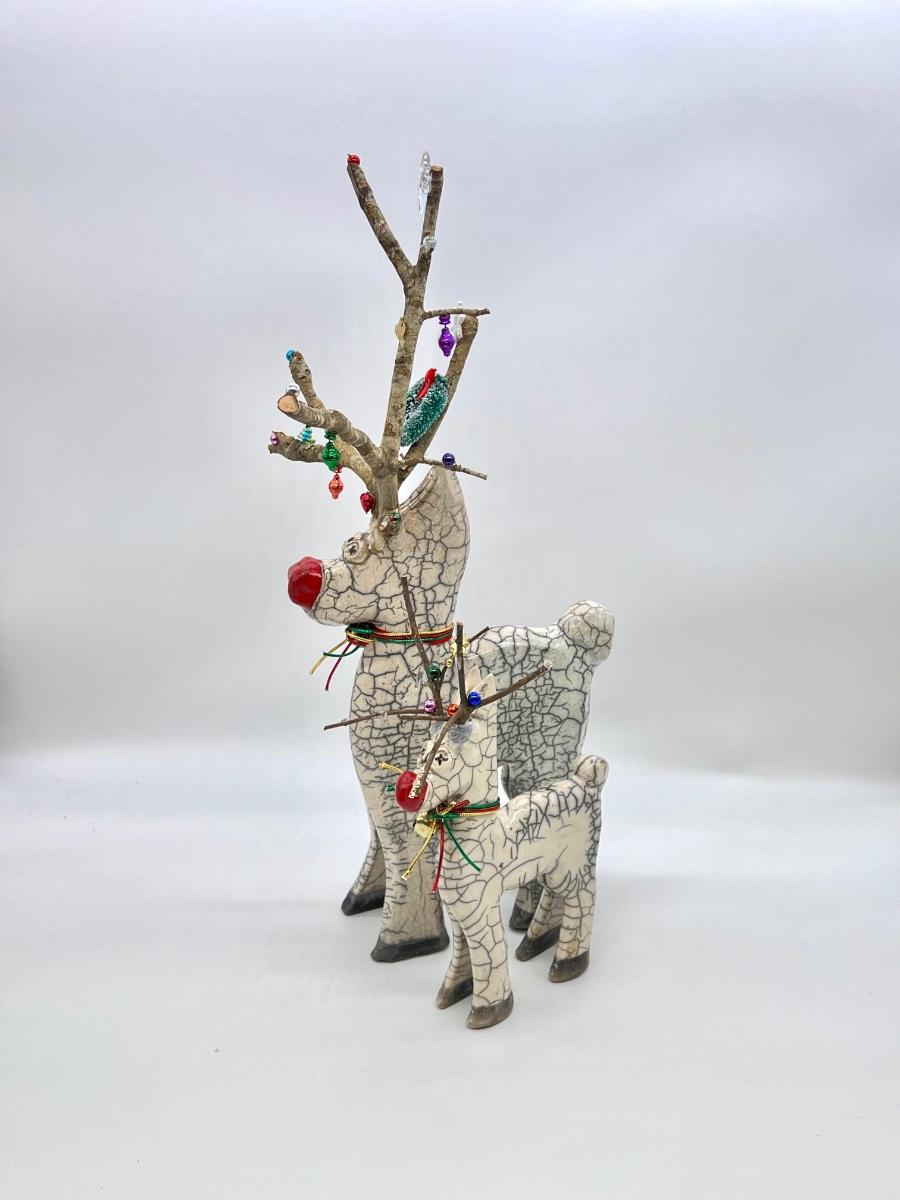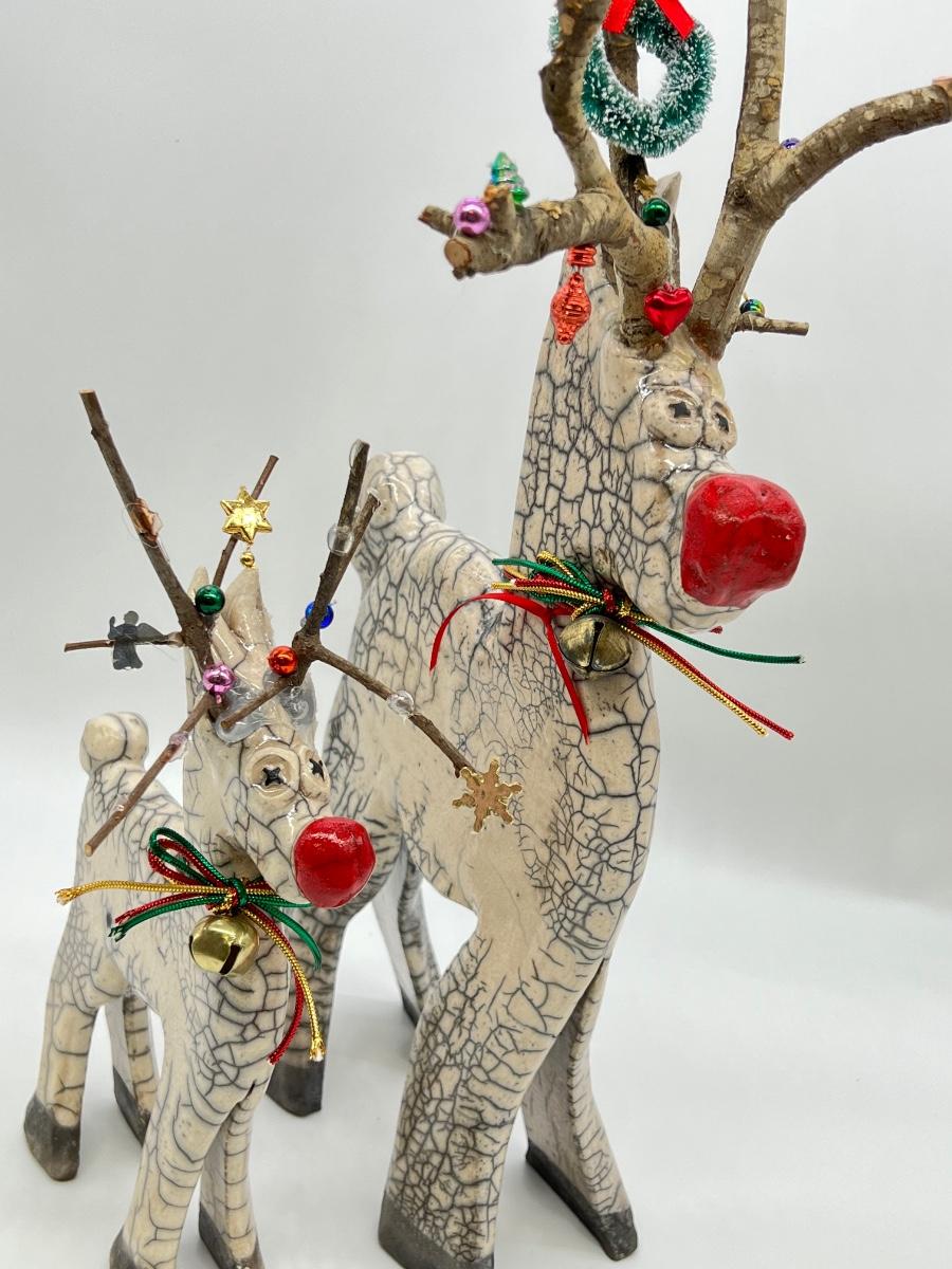 Pair (2) ~ Ceramic Reindeer With Tree Branch Antlers