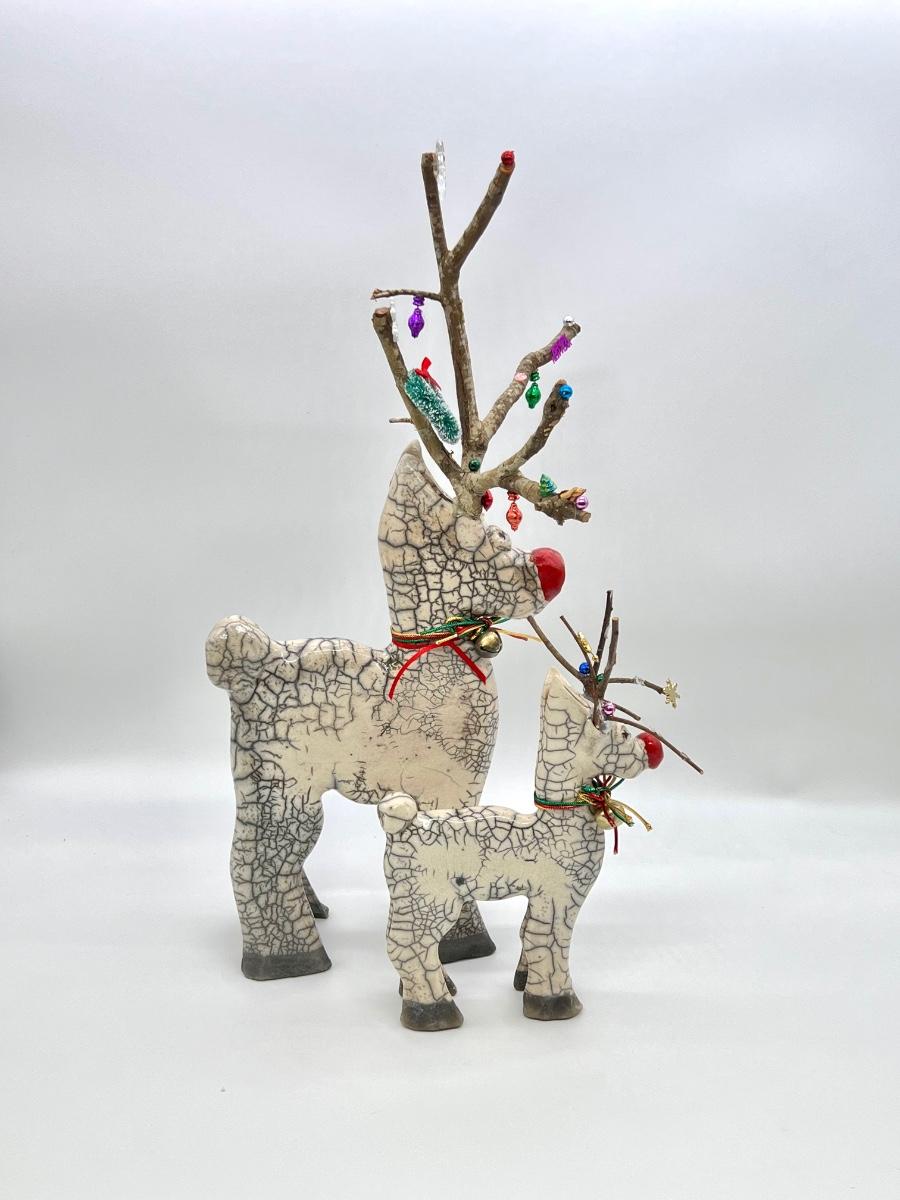 Antlers have been glued onto the ceramic. Big one = 22” H x 10” W x 8” D ~ Smaller one = 11” H x 7” W x 5” D