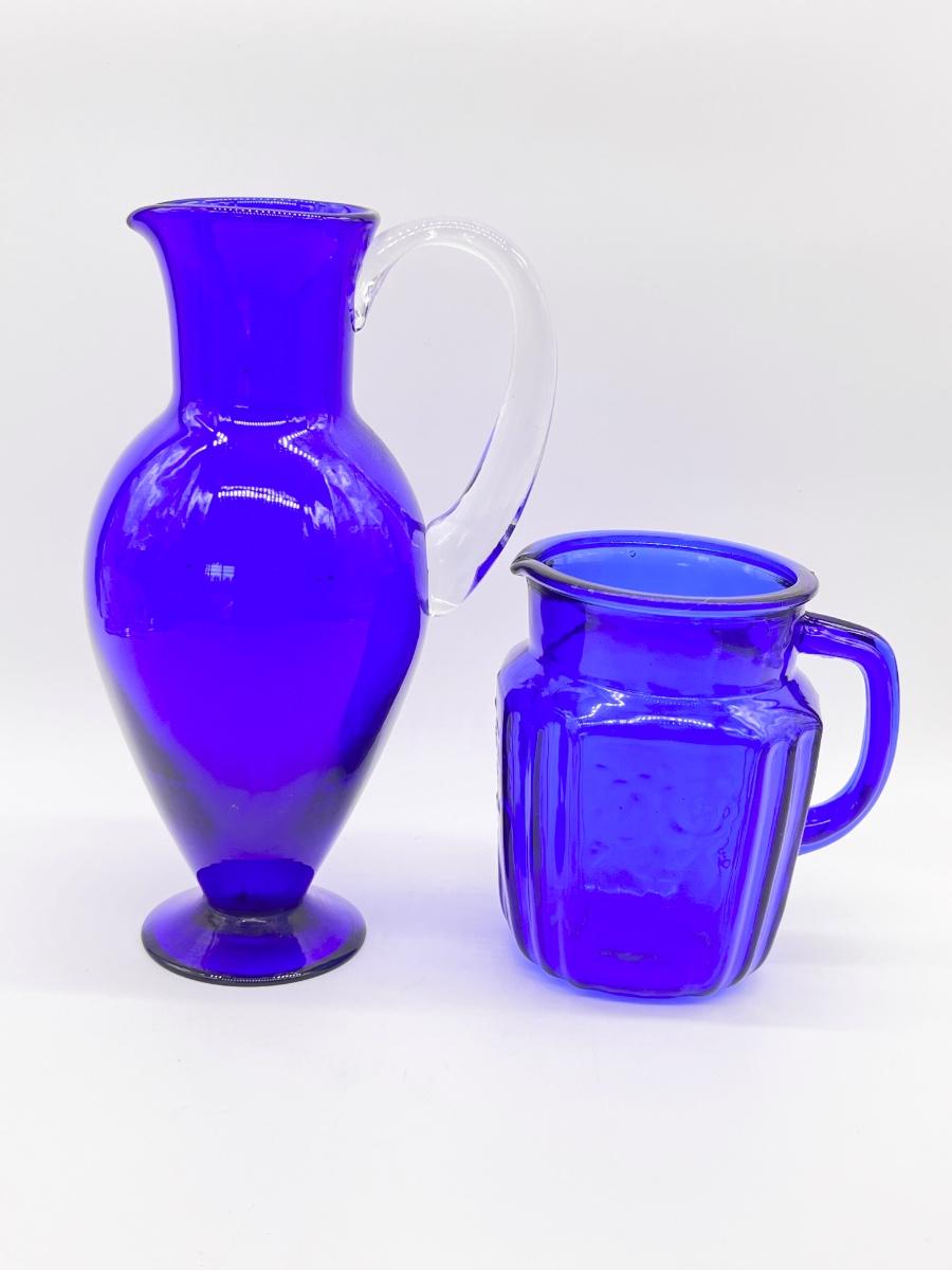 Pair (2) ~ Cobalt Blue Decorative Pitchers