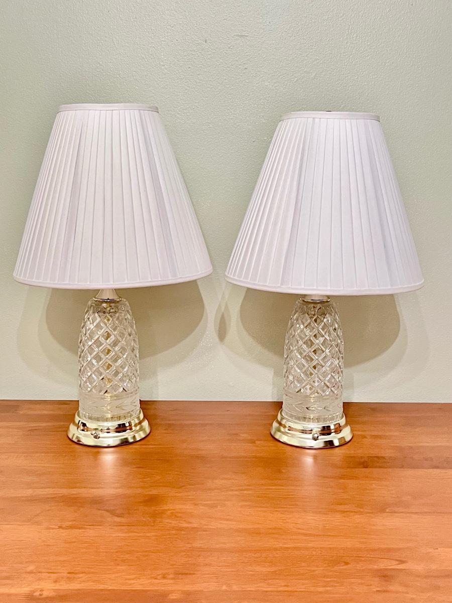 Pair (2) ~ Crystal Style Glass & Metal Table Lamps