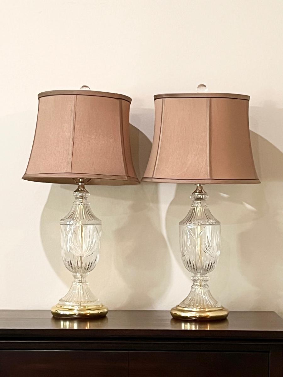 Pair (2) Crystal Table Lamps With Gold Accents ~ *Read Details