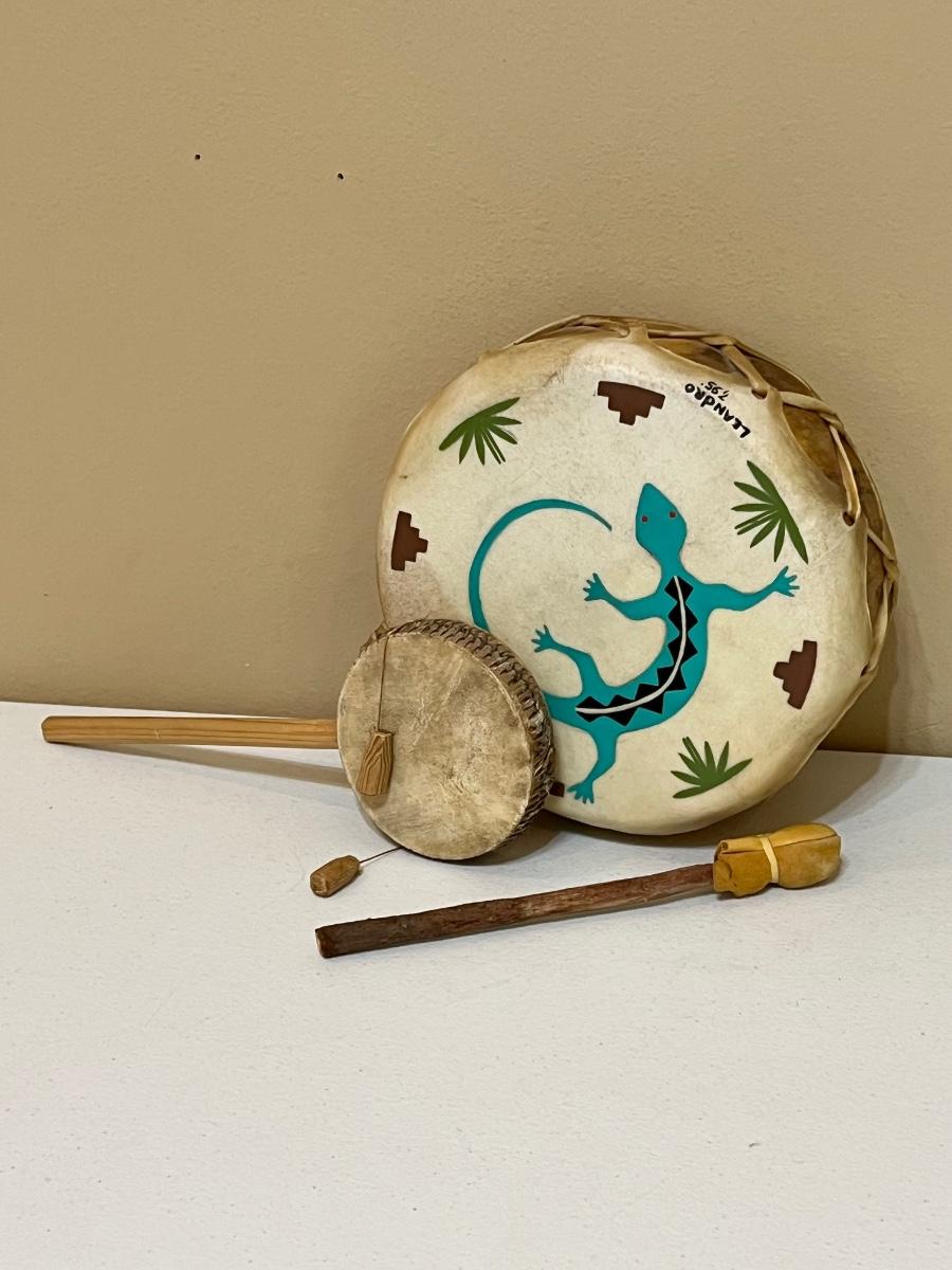 Larger drum = 4.5” H x 9.5” Round ~ Stick drum = 12.5” L