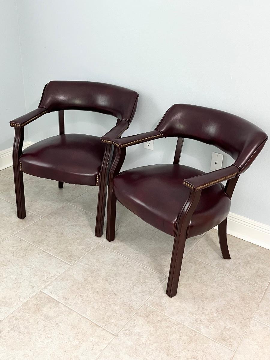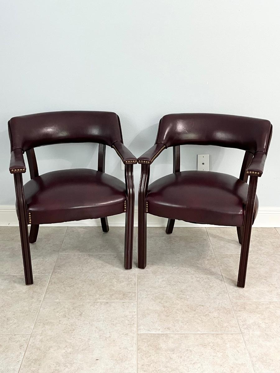 Pair (2) ~ Faux Leather Cushioned Side Chairs ~ With Nailhead Trim