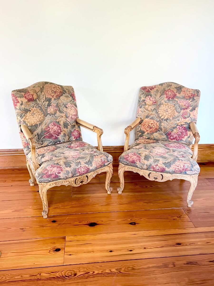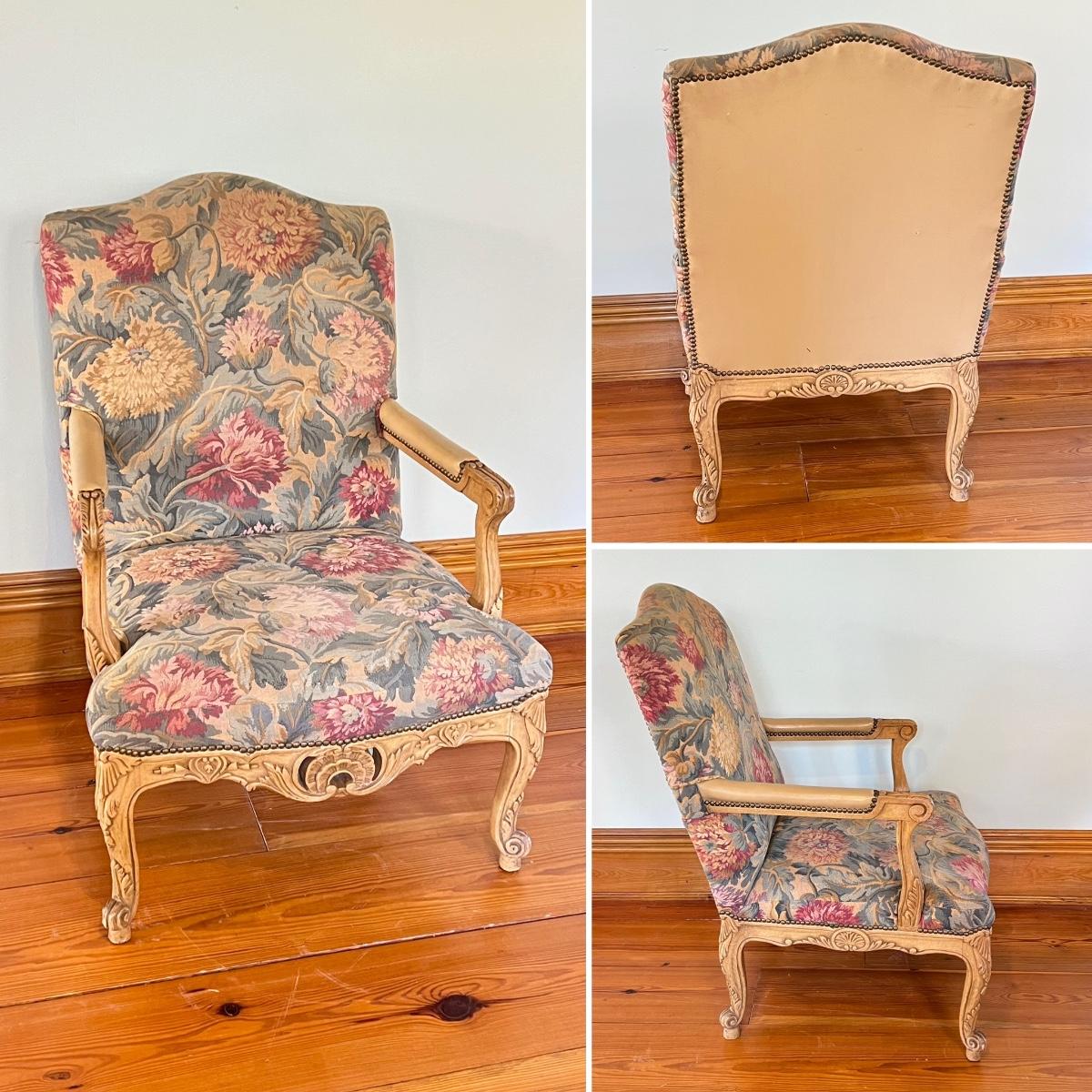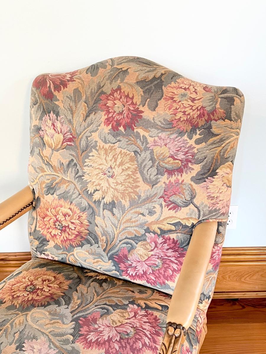 Pair (2) French Provincial Nail Head Trim Upholstered Arm Chairs ~ *Read Details