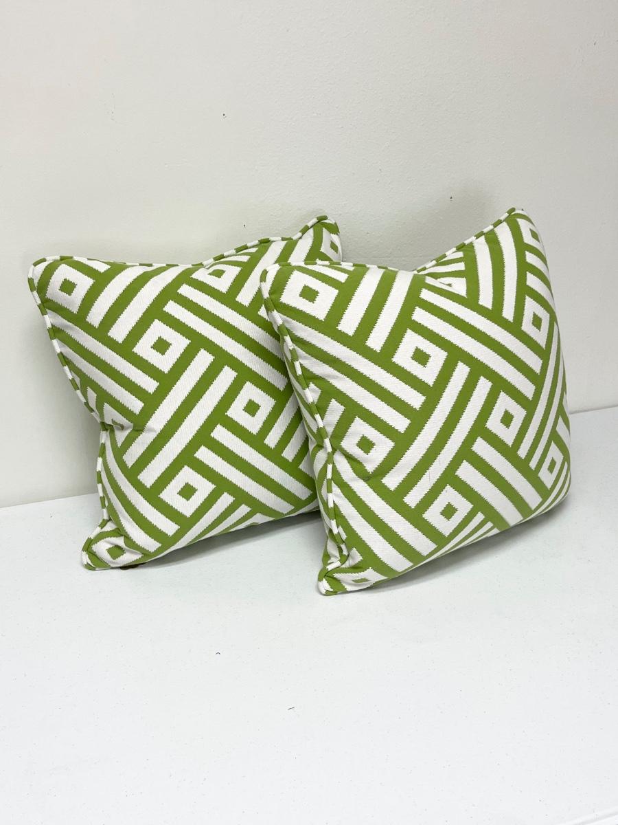Pair (2) ~ Green Basketweave Throw Pillows ~ New