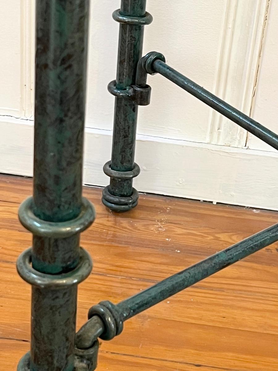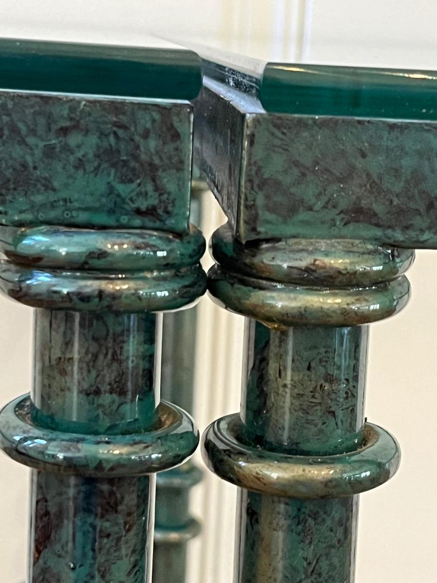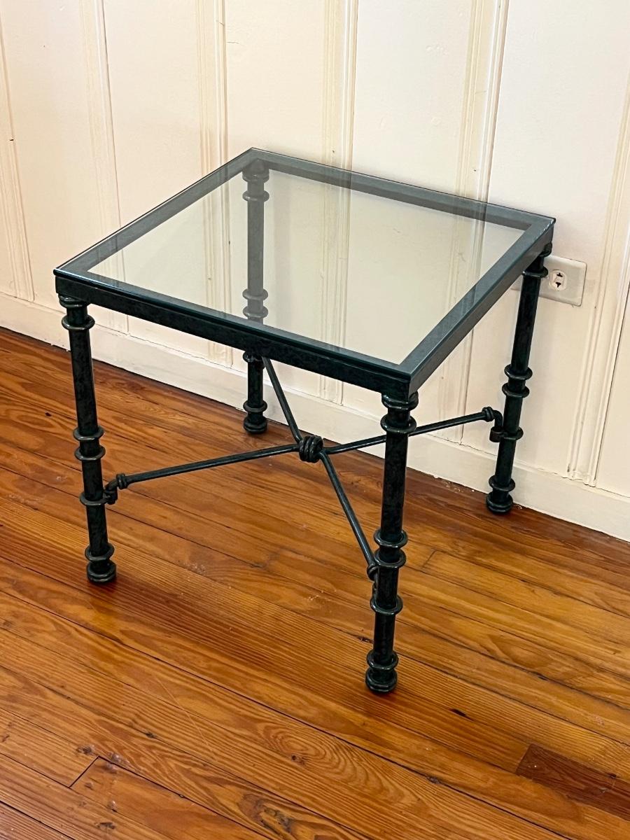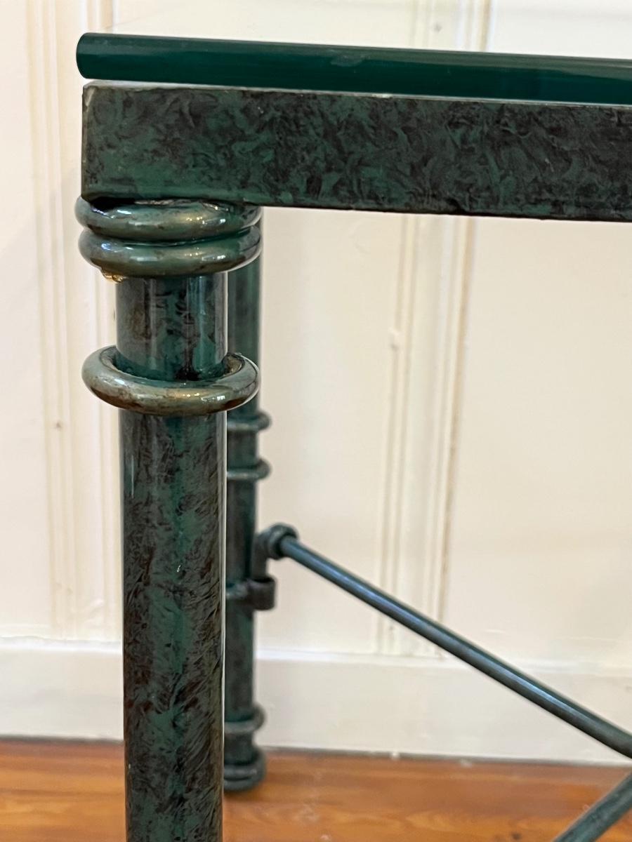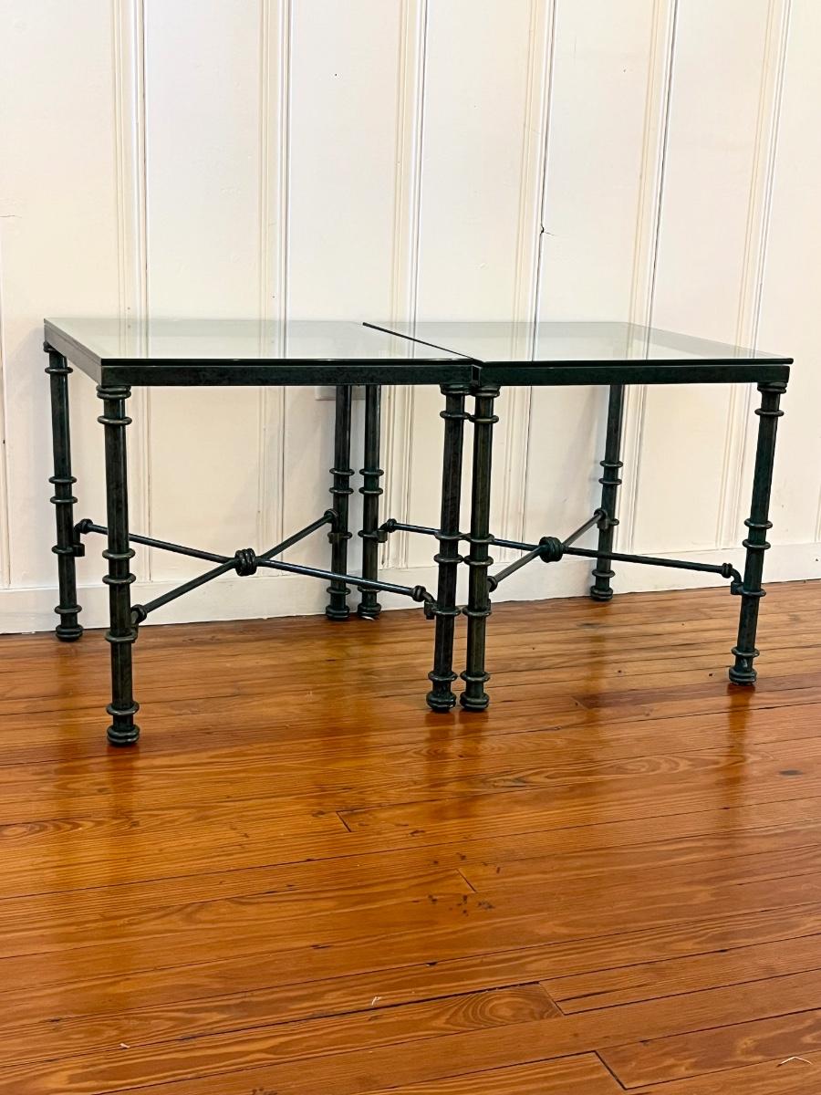 Pair (2) ~ Green & Black Finish Metal End Tables ~ With Glass Top
