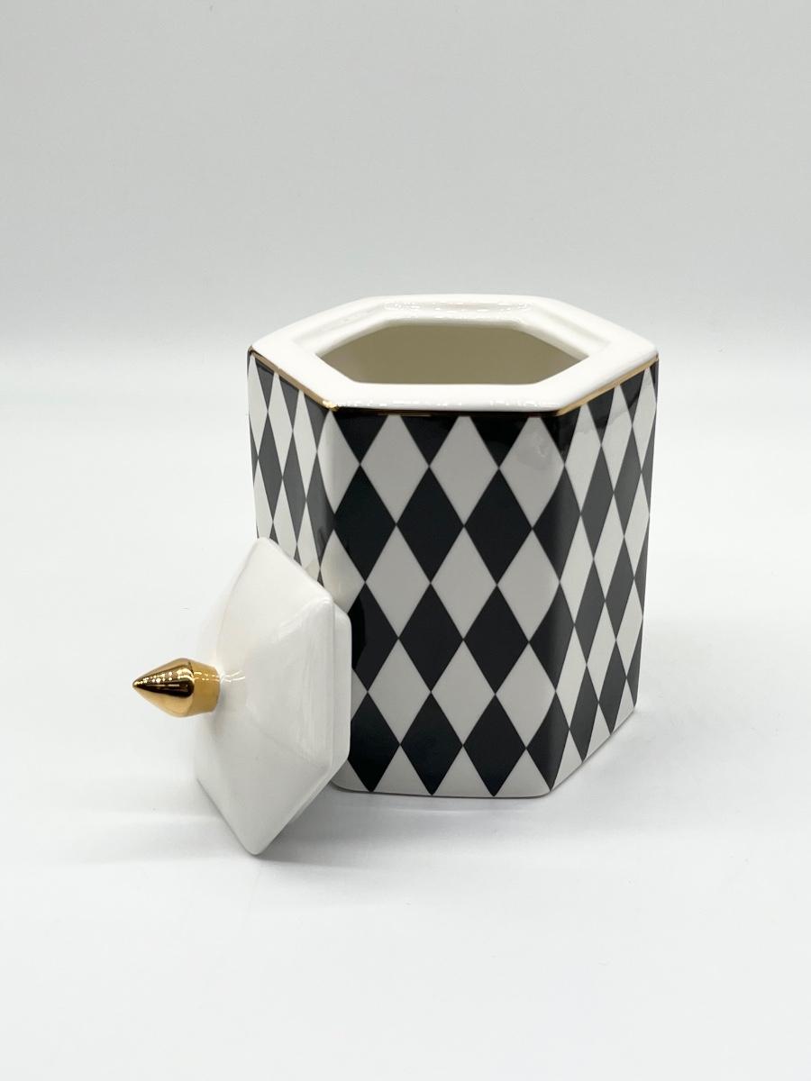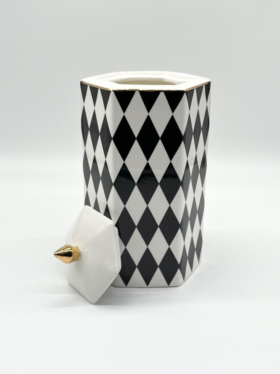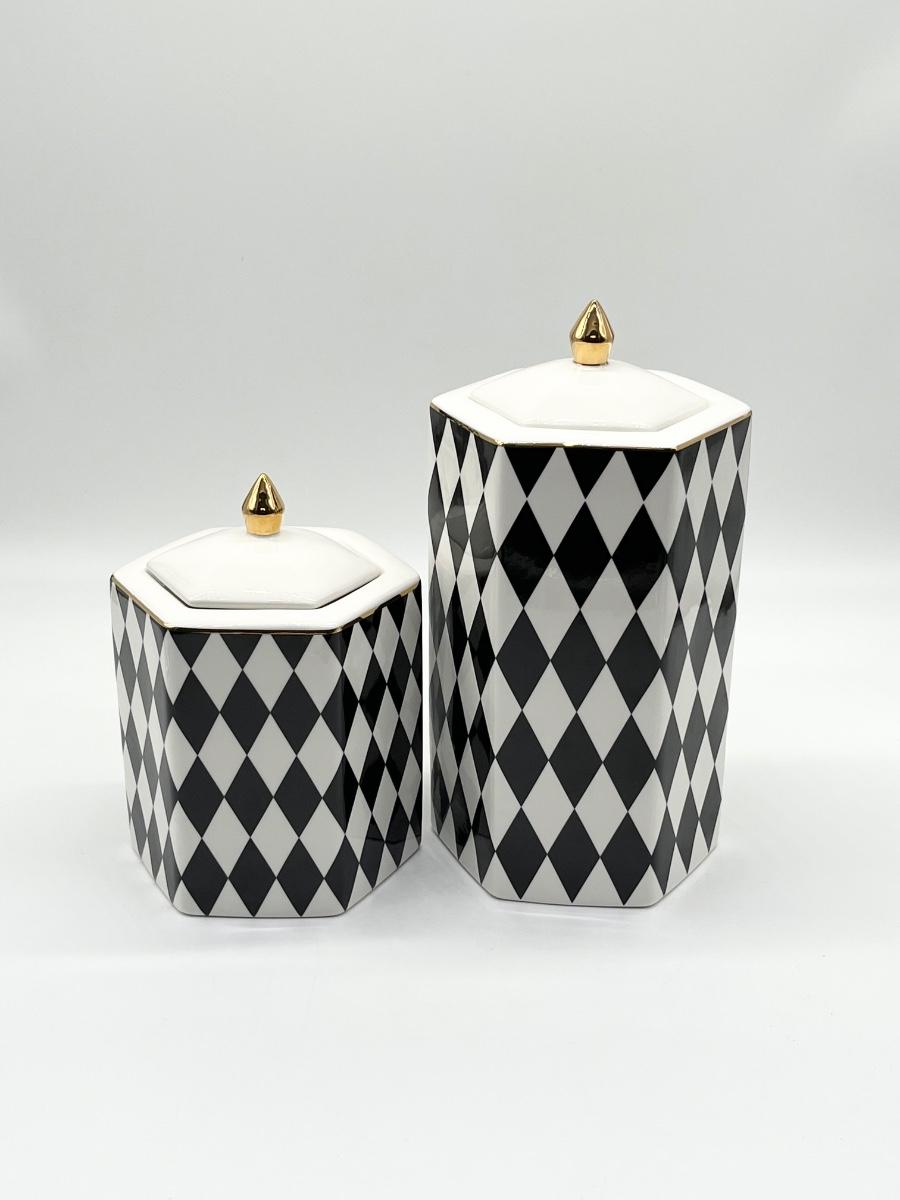 Pair (2) ~ Harlequin Porcelain Black & Gold Canisters