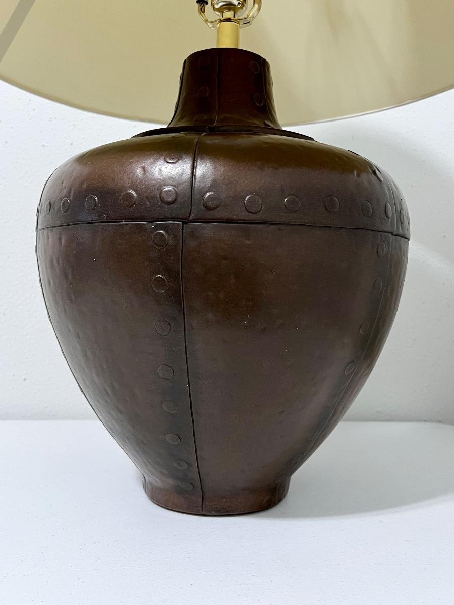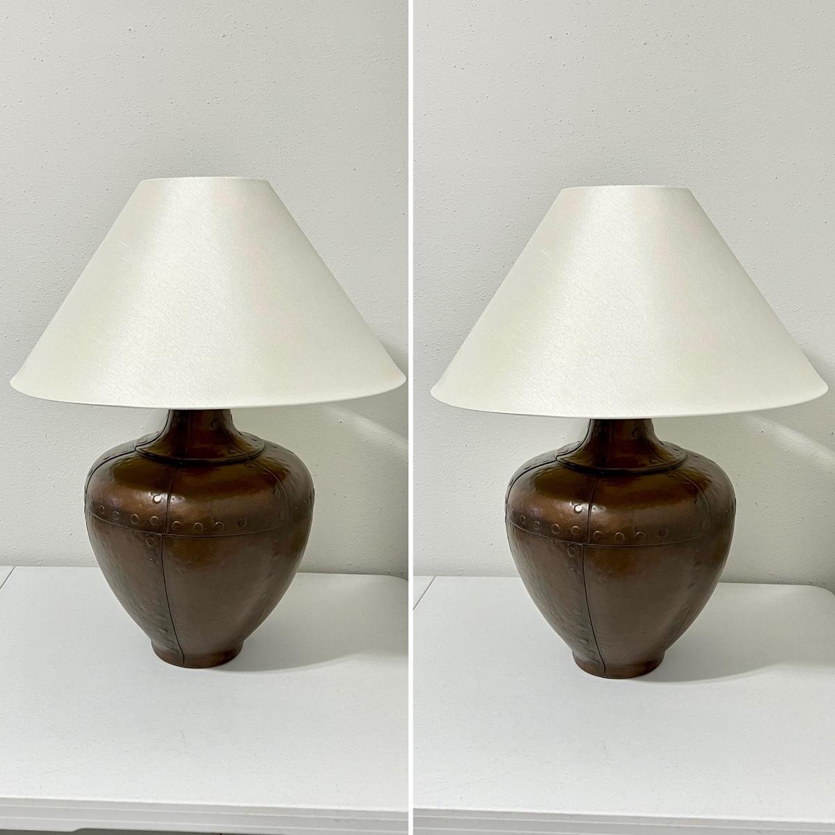 Pair (2) ~ Antiqued Copper Hammered Urn Table Lamps