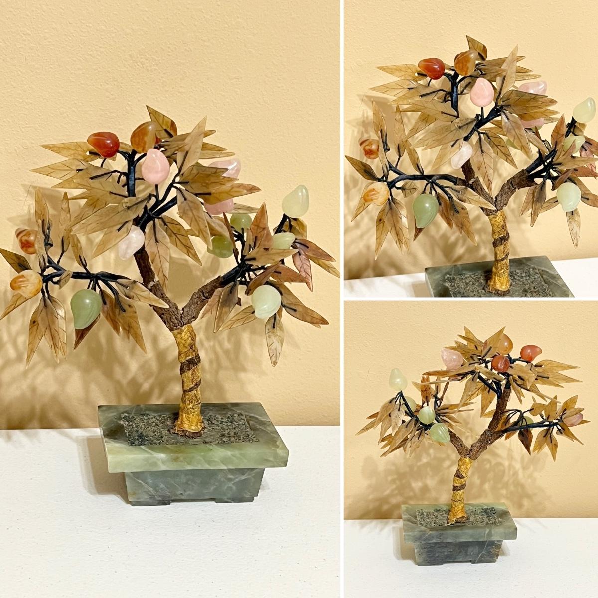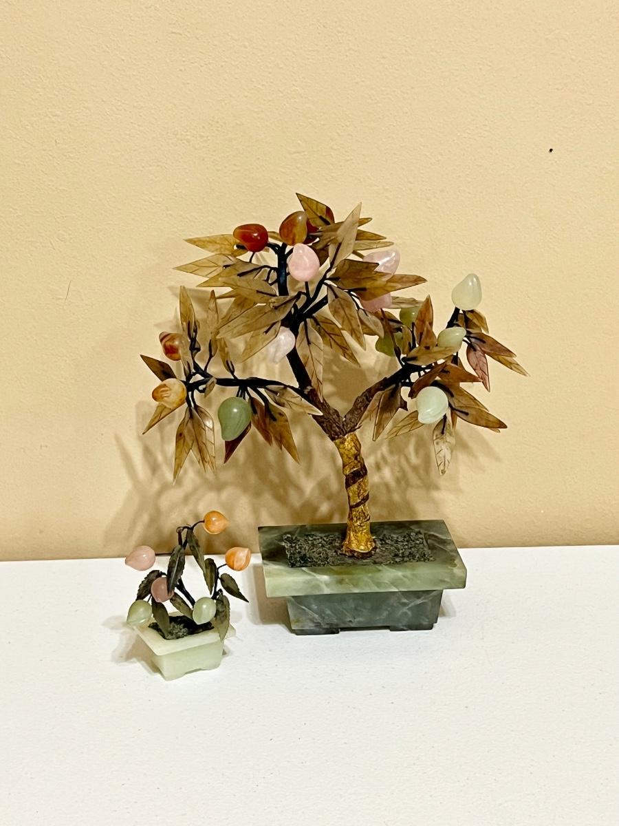 Pair (2) Jade & Multi Stone Bonsai Trees