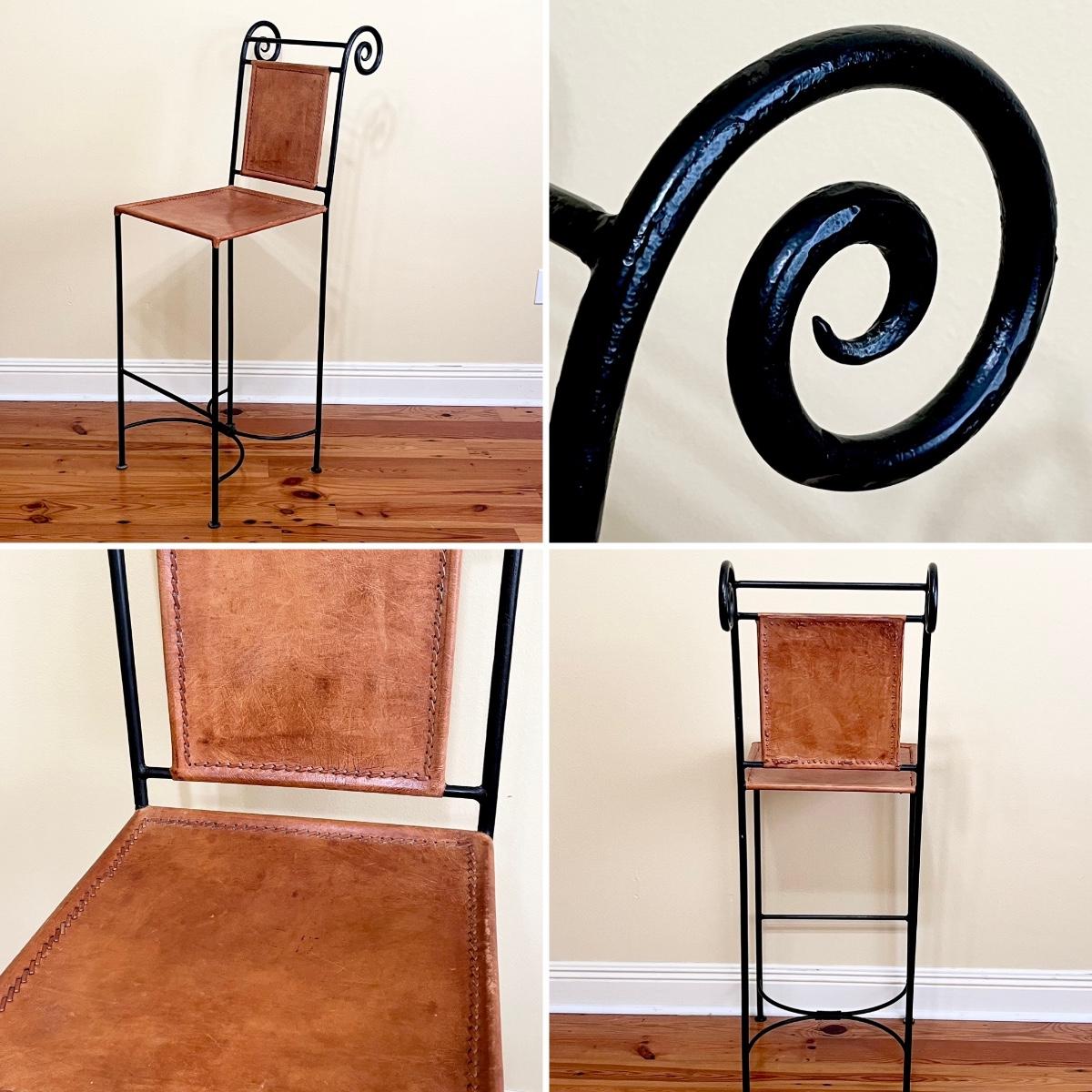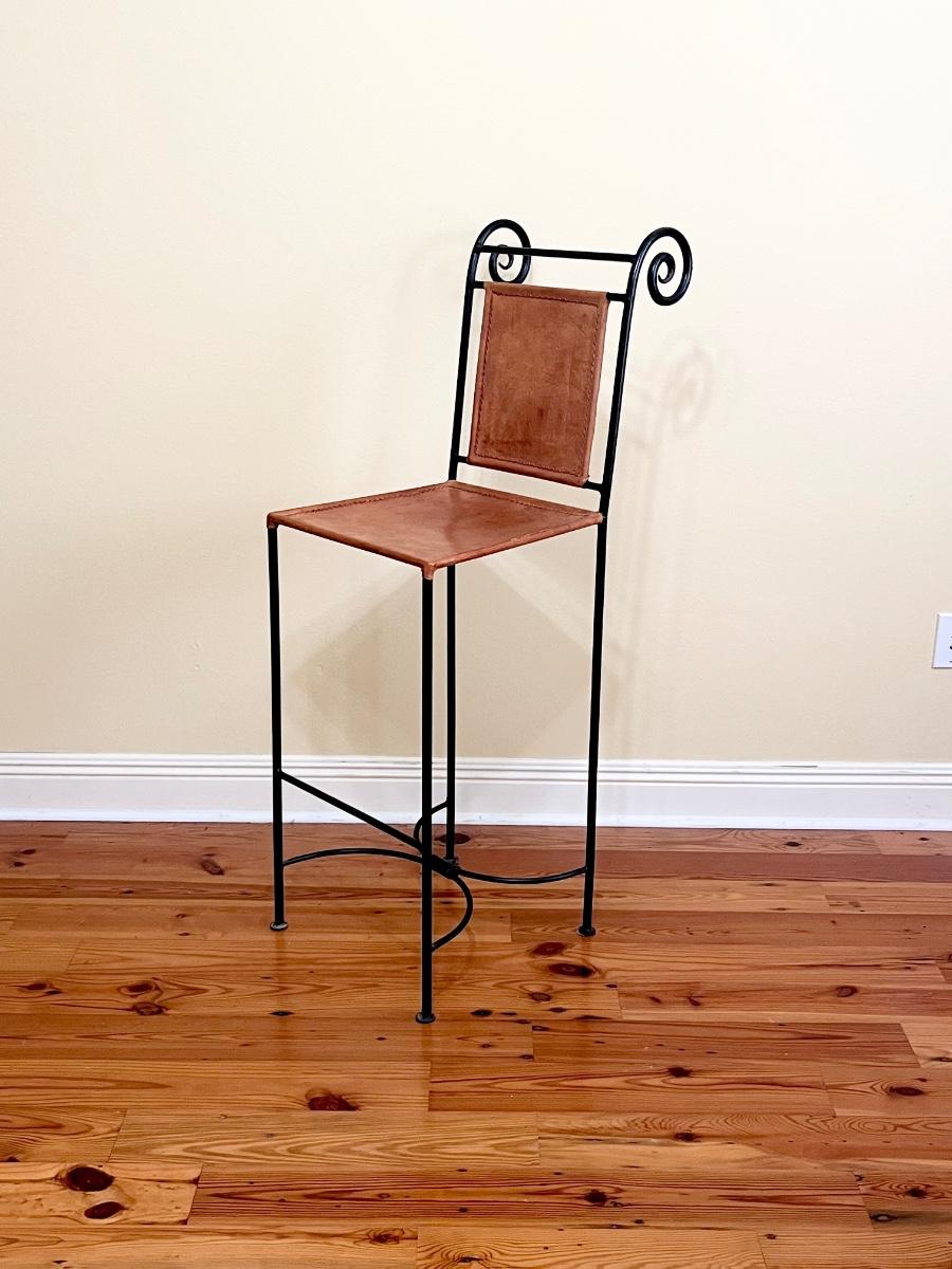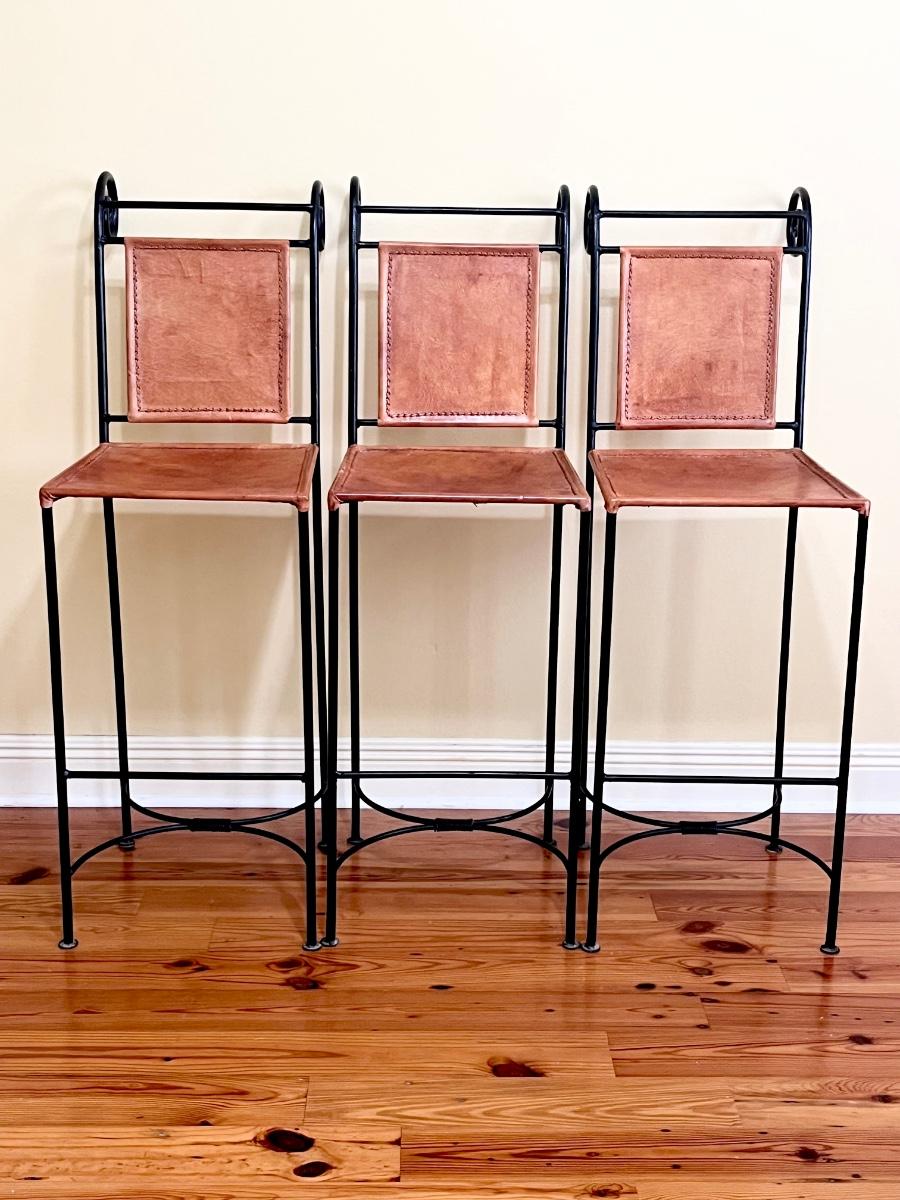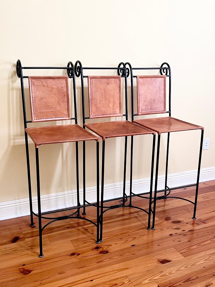 FAR EAST TRADING CO. ~ Three (3) ~ Leather & Black Iron Barstools