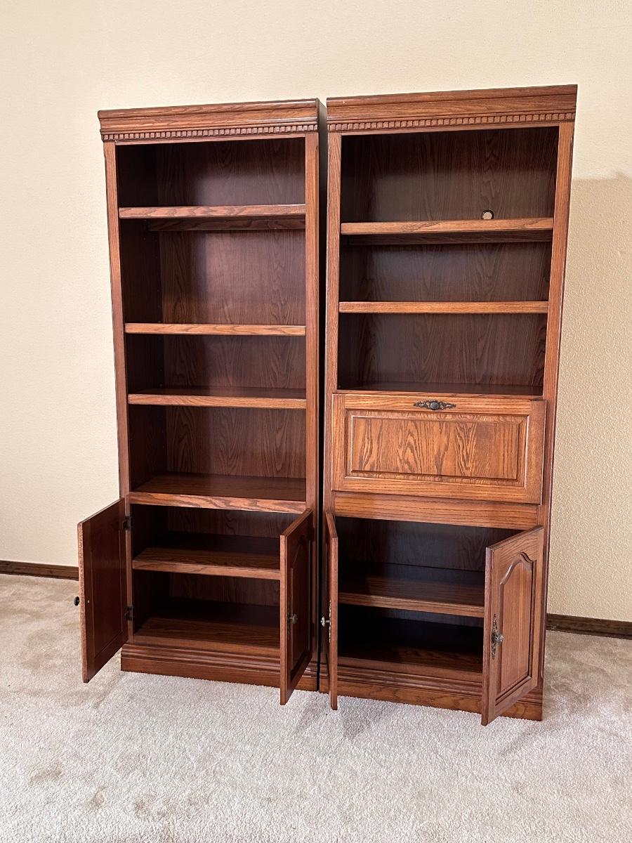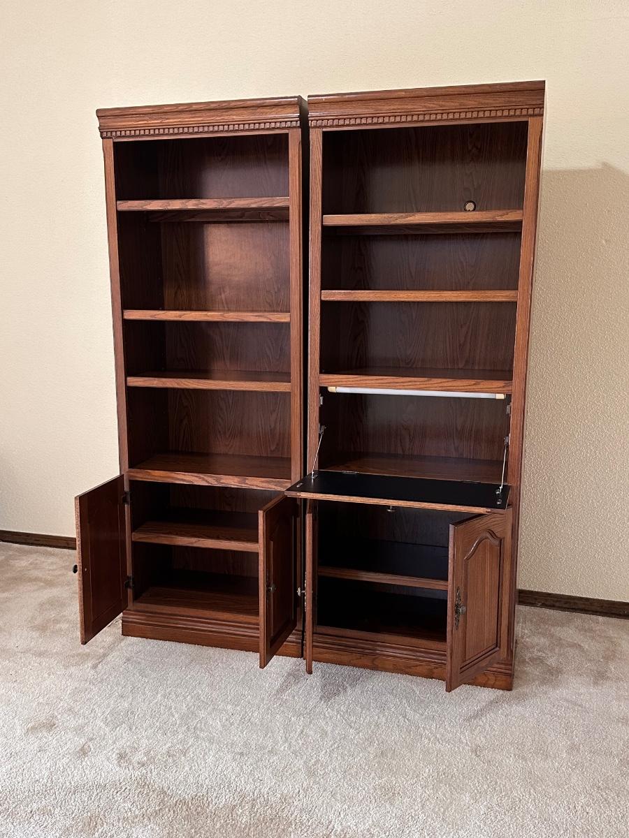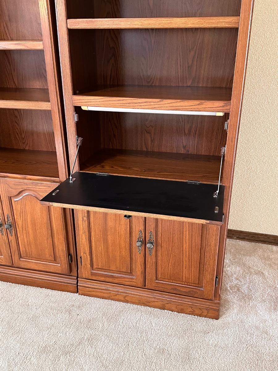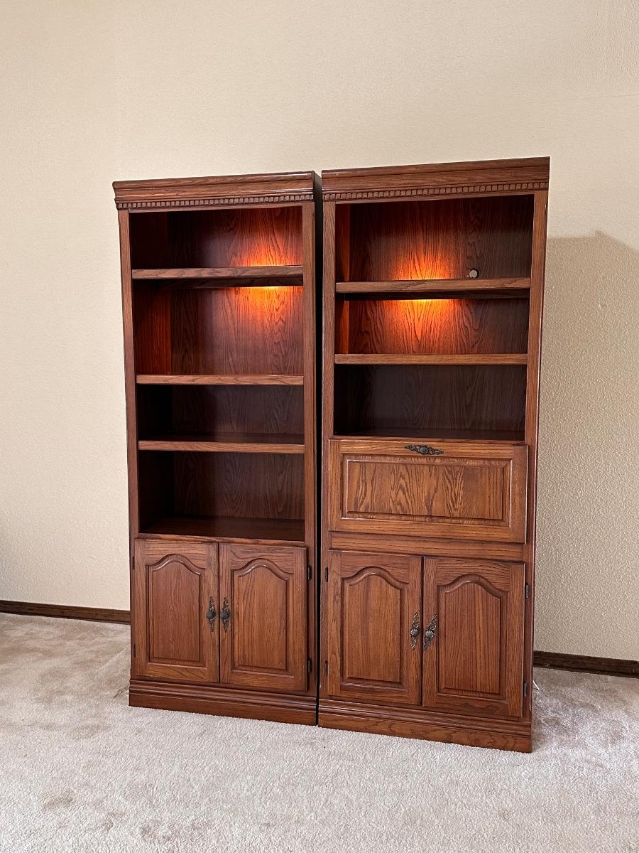 Pair (2) Lighted Laminated Bookshelves w/ Flip Top Desk