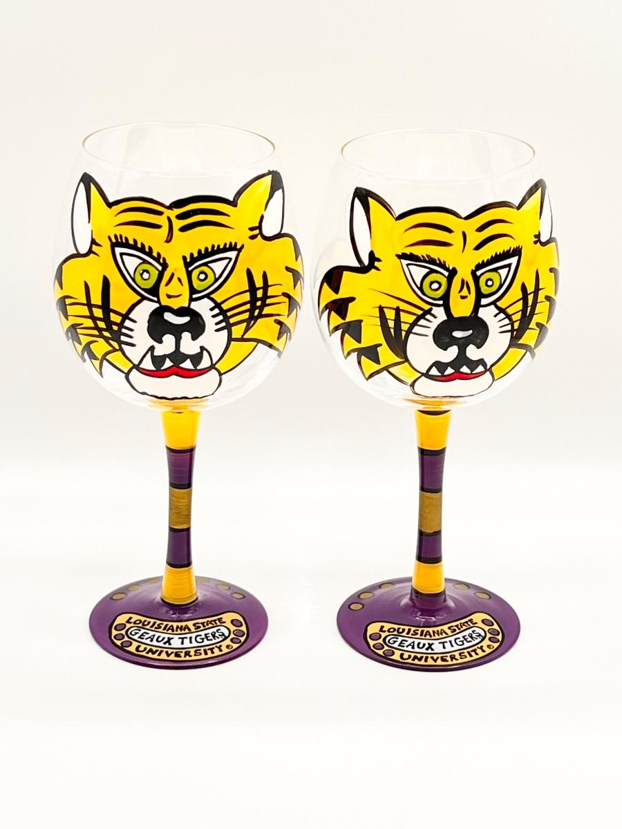 Pair (2) ~ LSU Tigers Hand Painted Wine Glasses
