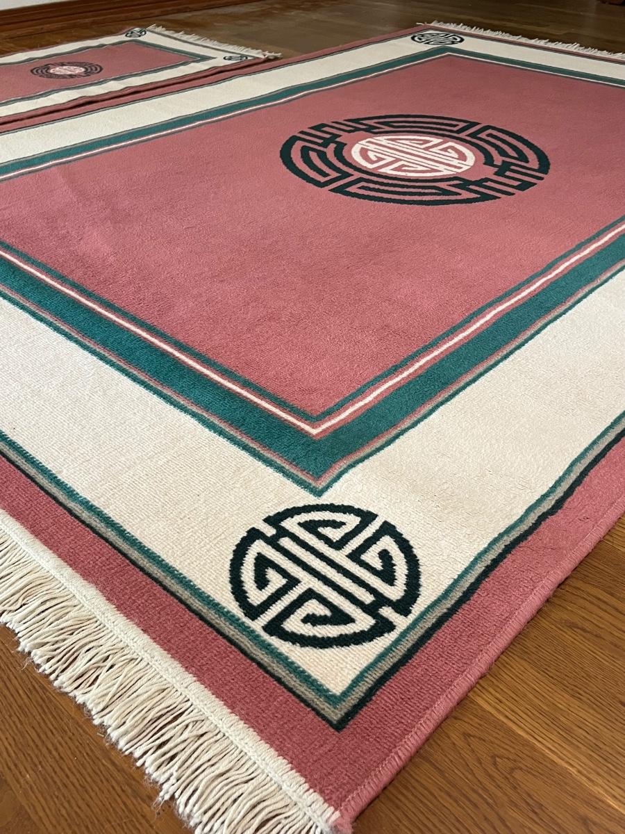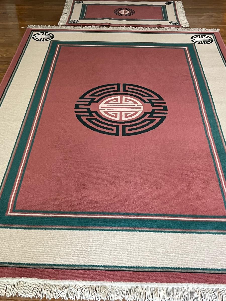 Pair (2) ~ Mauve & Teal Design Matching Rugs