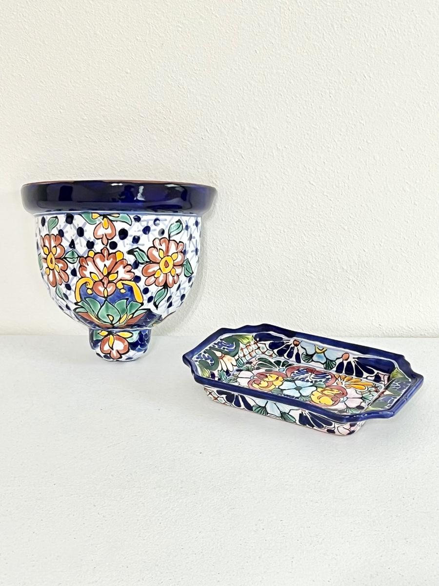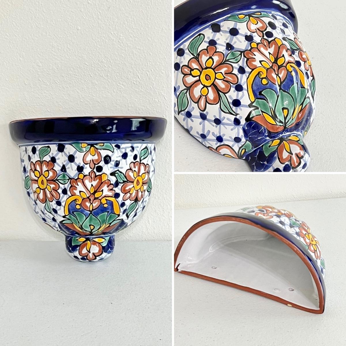 Planter has drain hole at the bottom ~ Wall hanging planter = 8.25” H x 9” W x 4.5” D ~ Triangle candy dish = 1.5” H x 10” W x 6” D