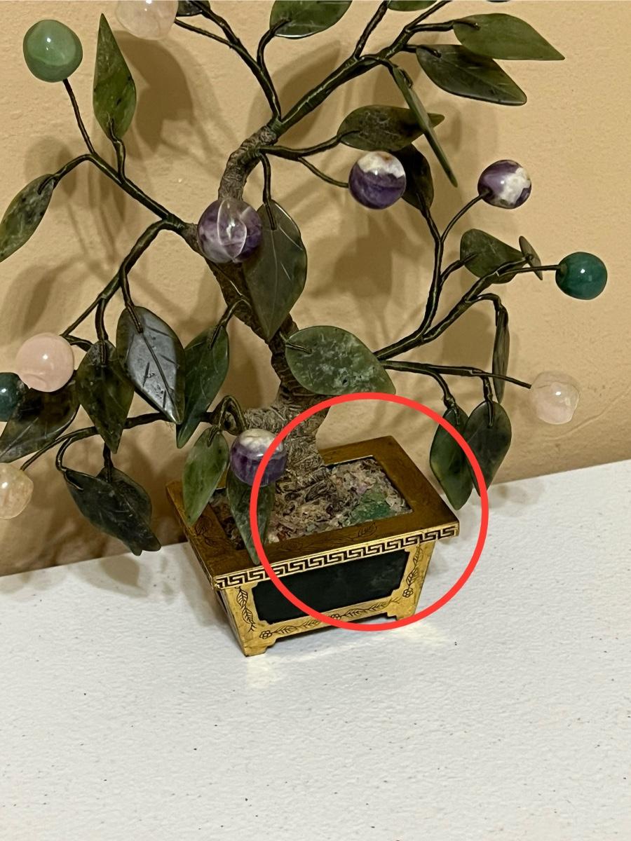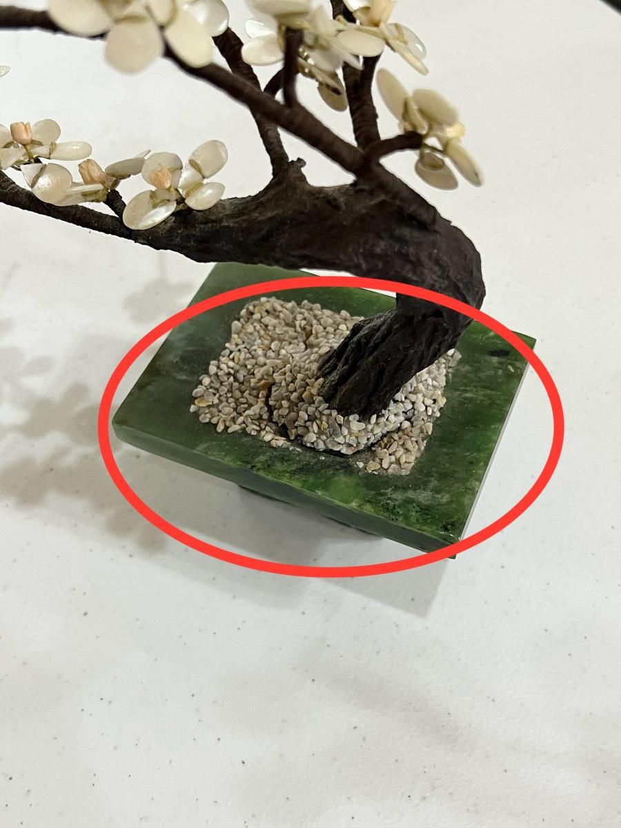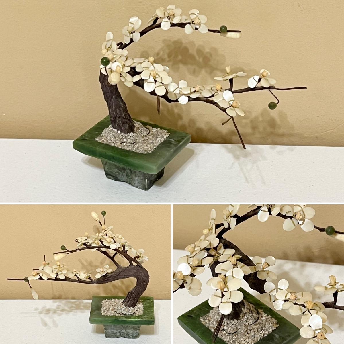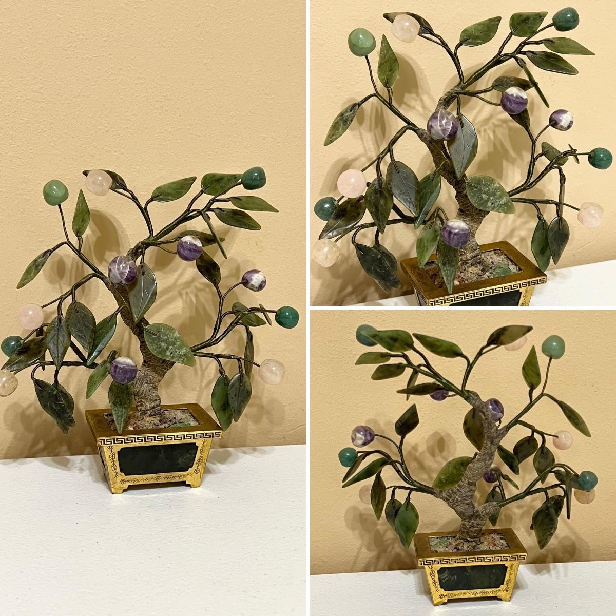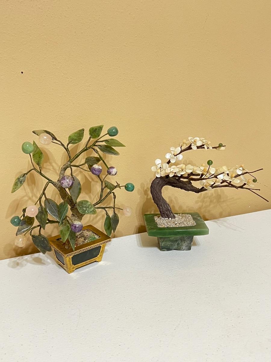 Both have the tiny rocks missing at the base, see photos ~ Cherry Blossom tree = 7” H x 8.5” W x 7.5 D ~ Jade leaf with multi stone tree = 9” H x 8” W x 3.5” W
