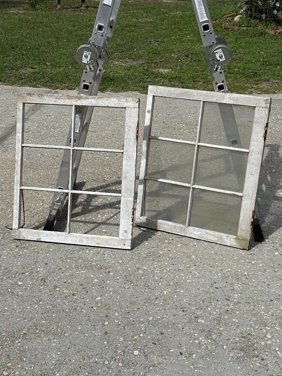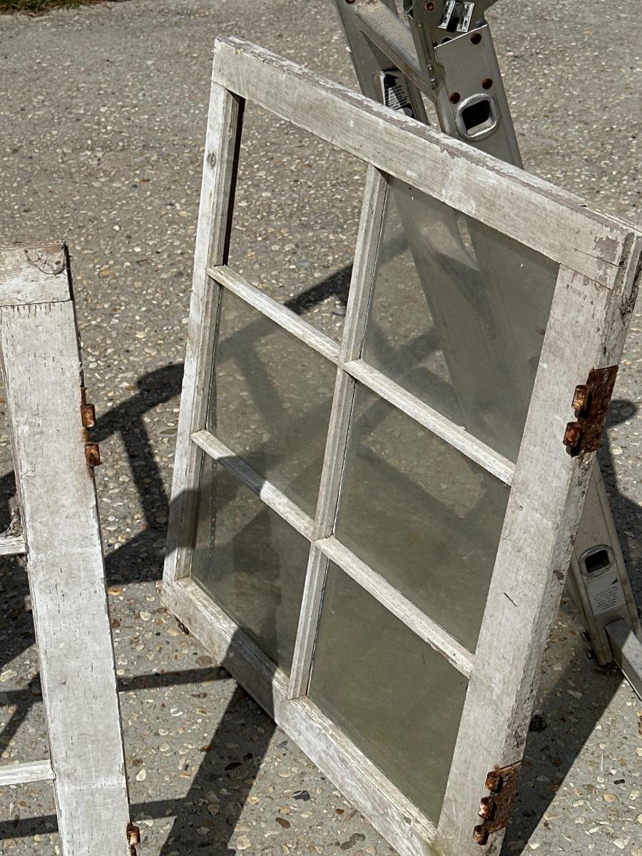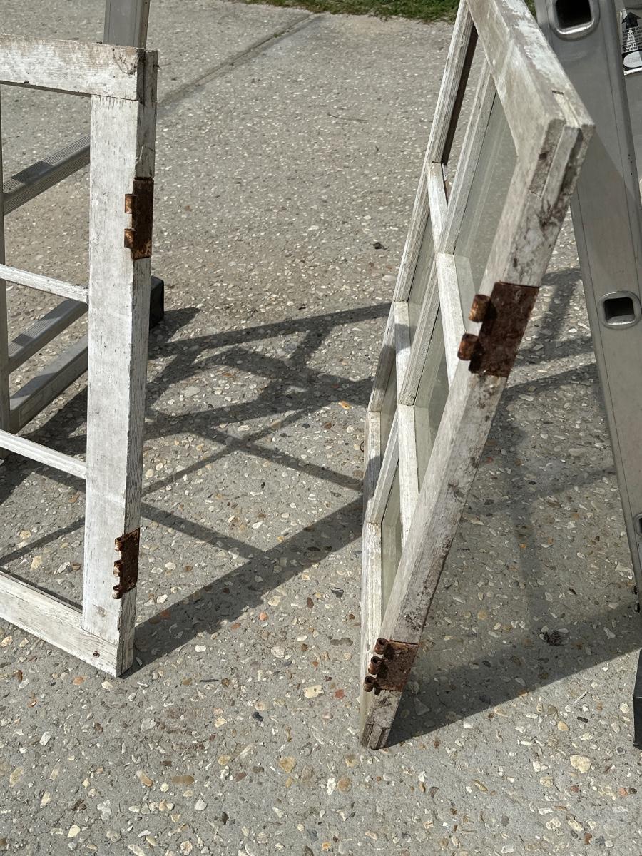 See photos for description ~ Original hardware ~ One window has no glass, the other has one glass pane missing.