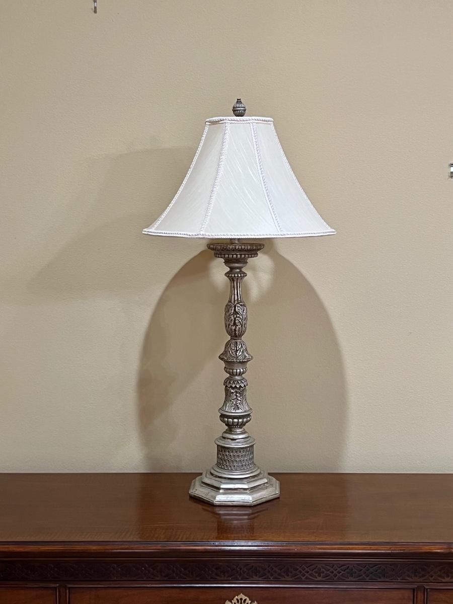 Made of a resin type material. 3 way lamp. 38” H x 18” Round.