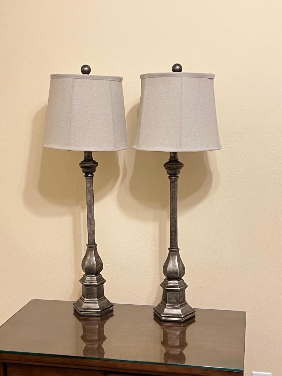 Pair (2) ~ Silvery Table Lamps ~ Light Weight