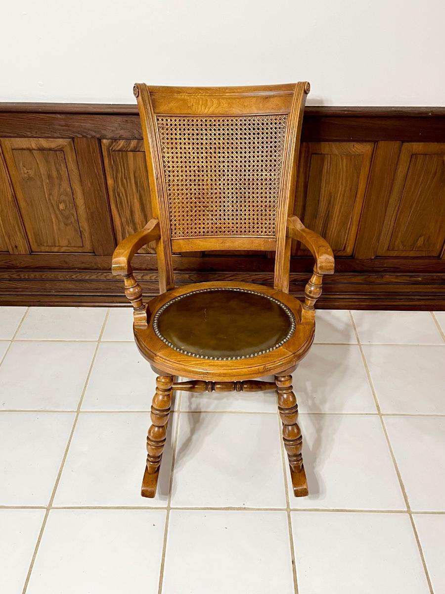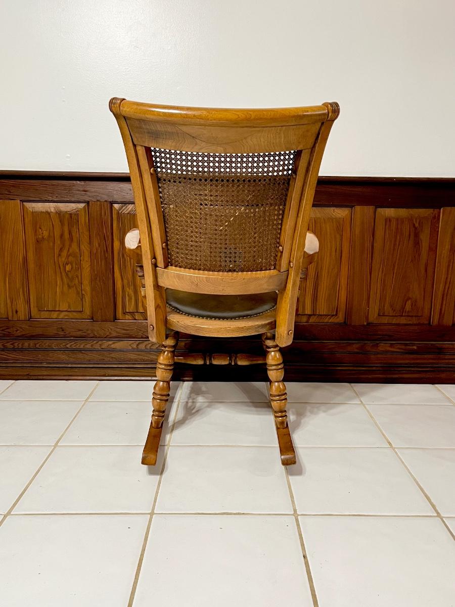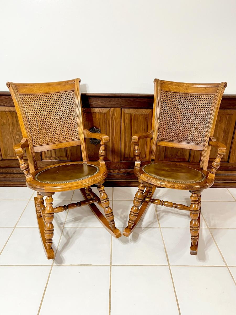 Pair (2) ~ Solid Wood Rocking Chairs With Cane Back & Nailhead Design Seat