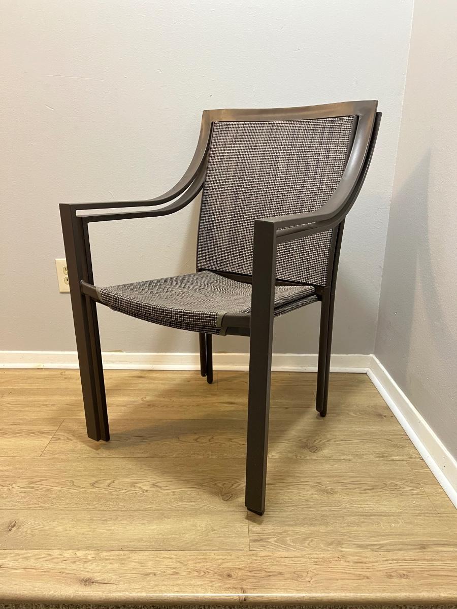 Pair (2) Stacking Outdoor Brown Metal Chairs
