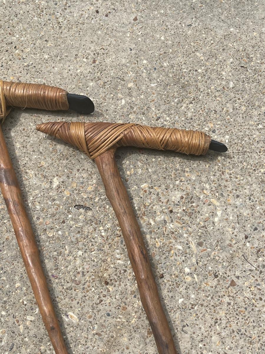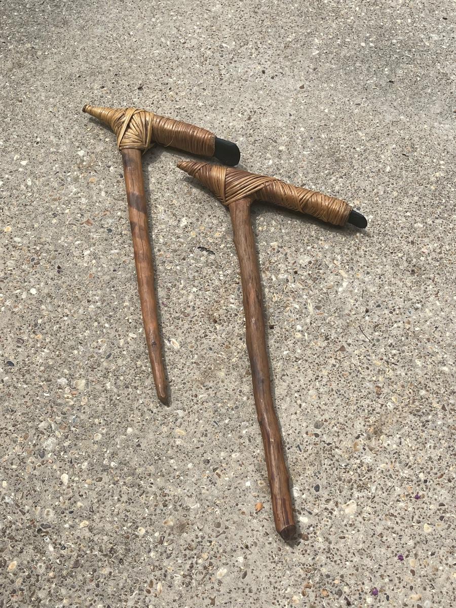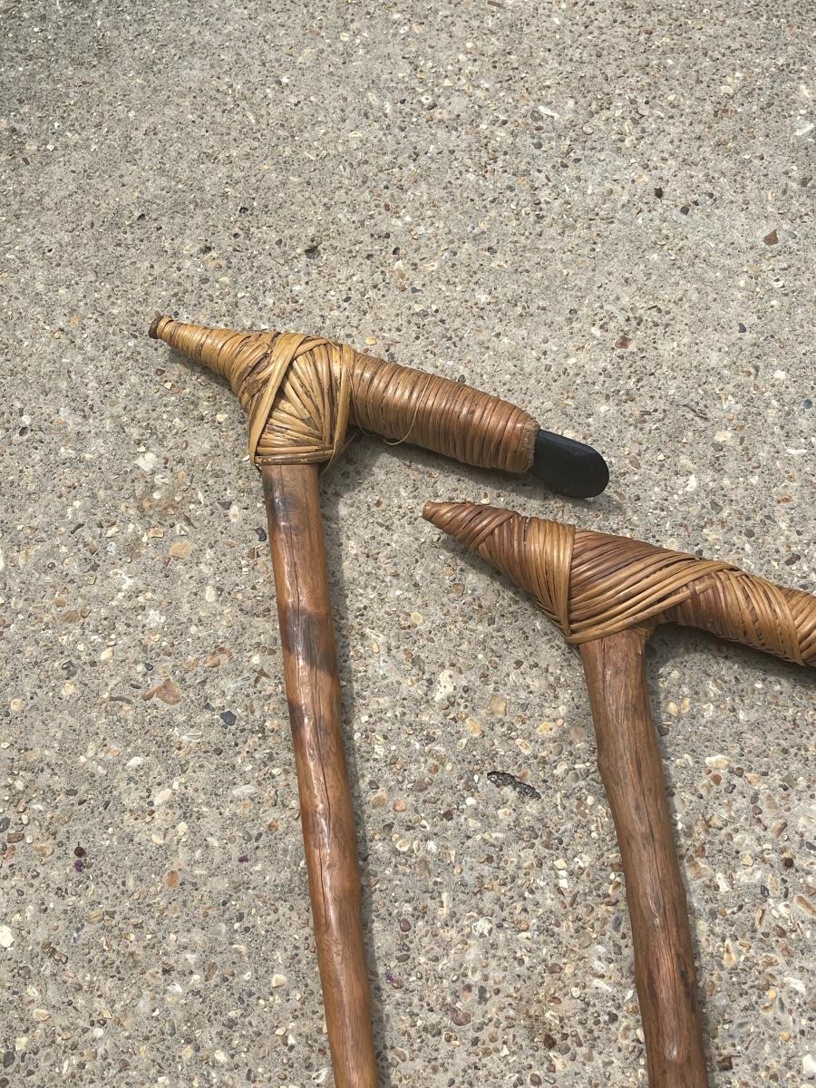 Pair (2) ~ Stone Tip & Wood Axes ~ Hand Crafted In Indonesia