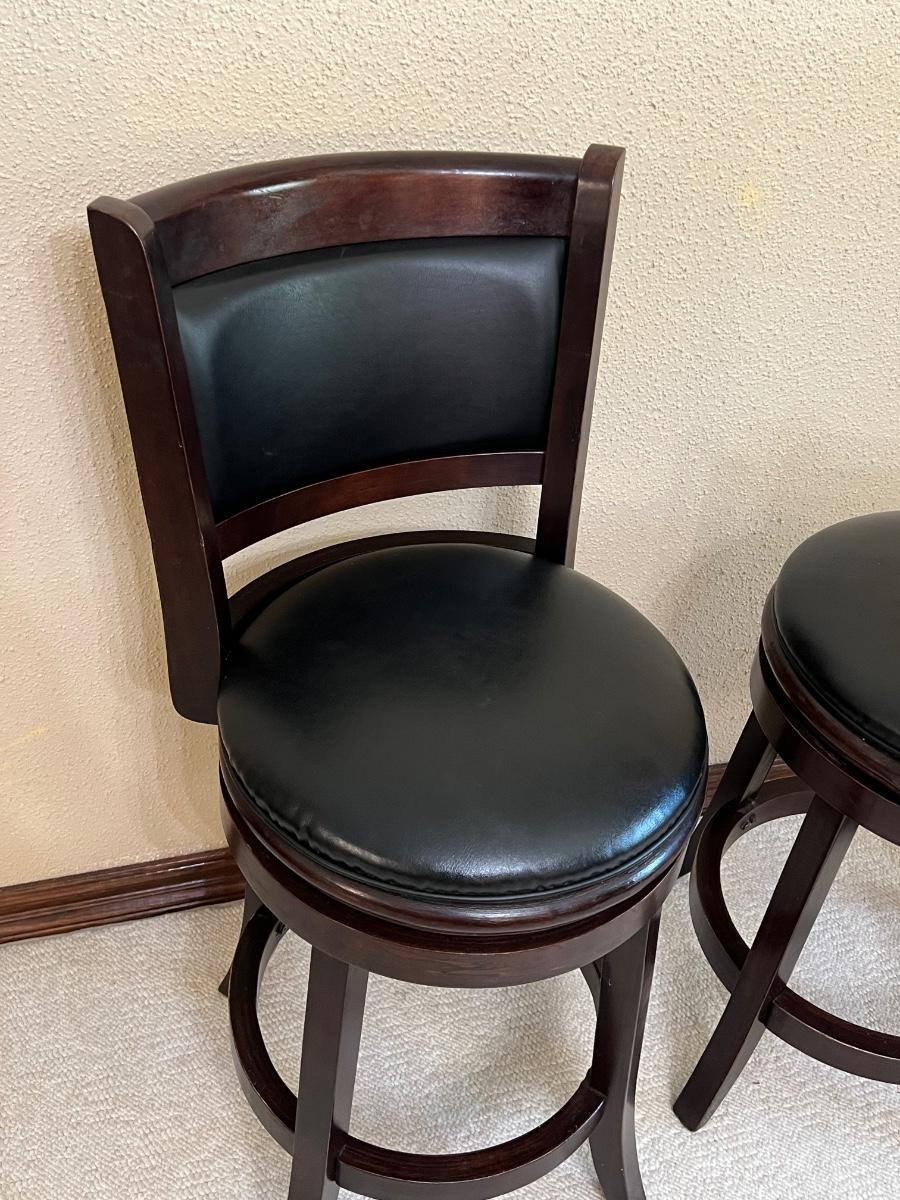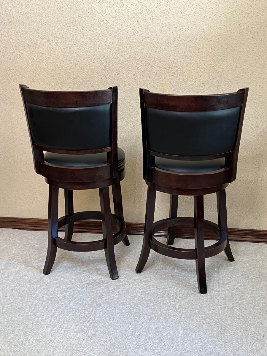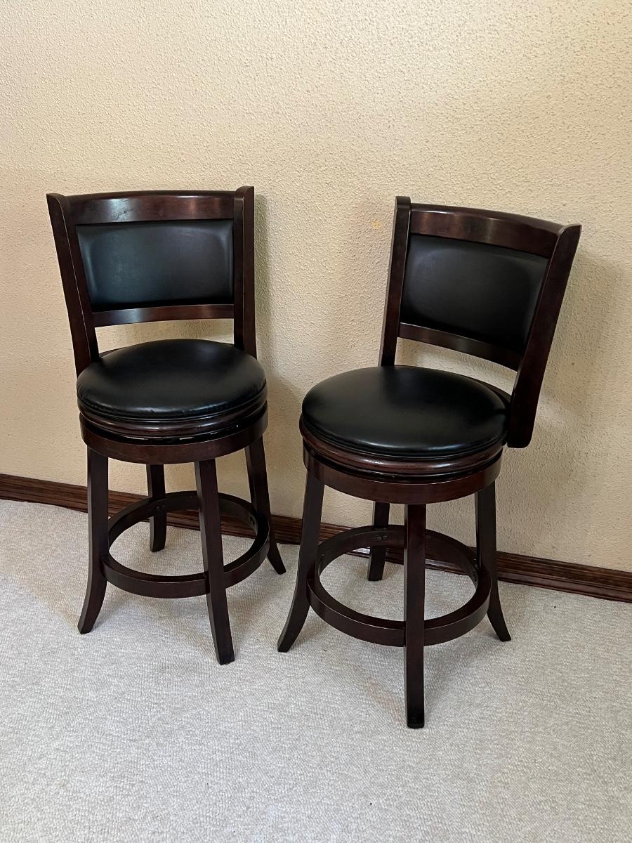 38.5” H x 18” W x 19.5” D ~ Floor to seat = 25” H ~ stools swivel all the way around
