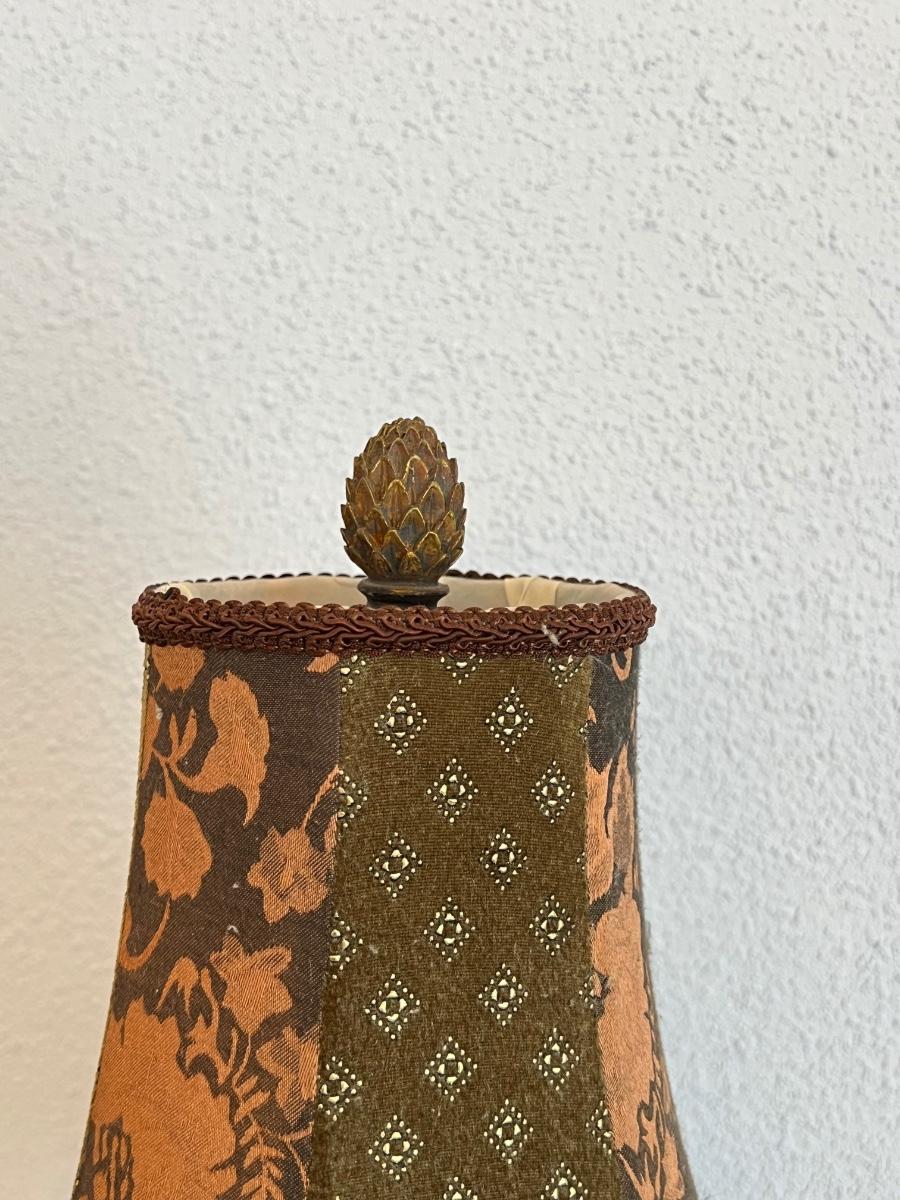 Base is made of a resin based material, middle pole is metal ~ 39” H x 12” Round