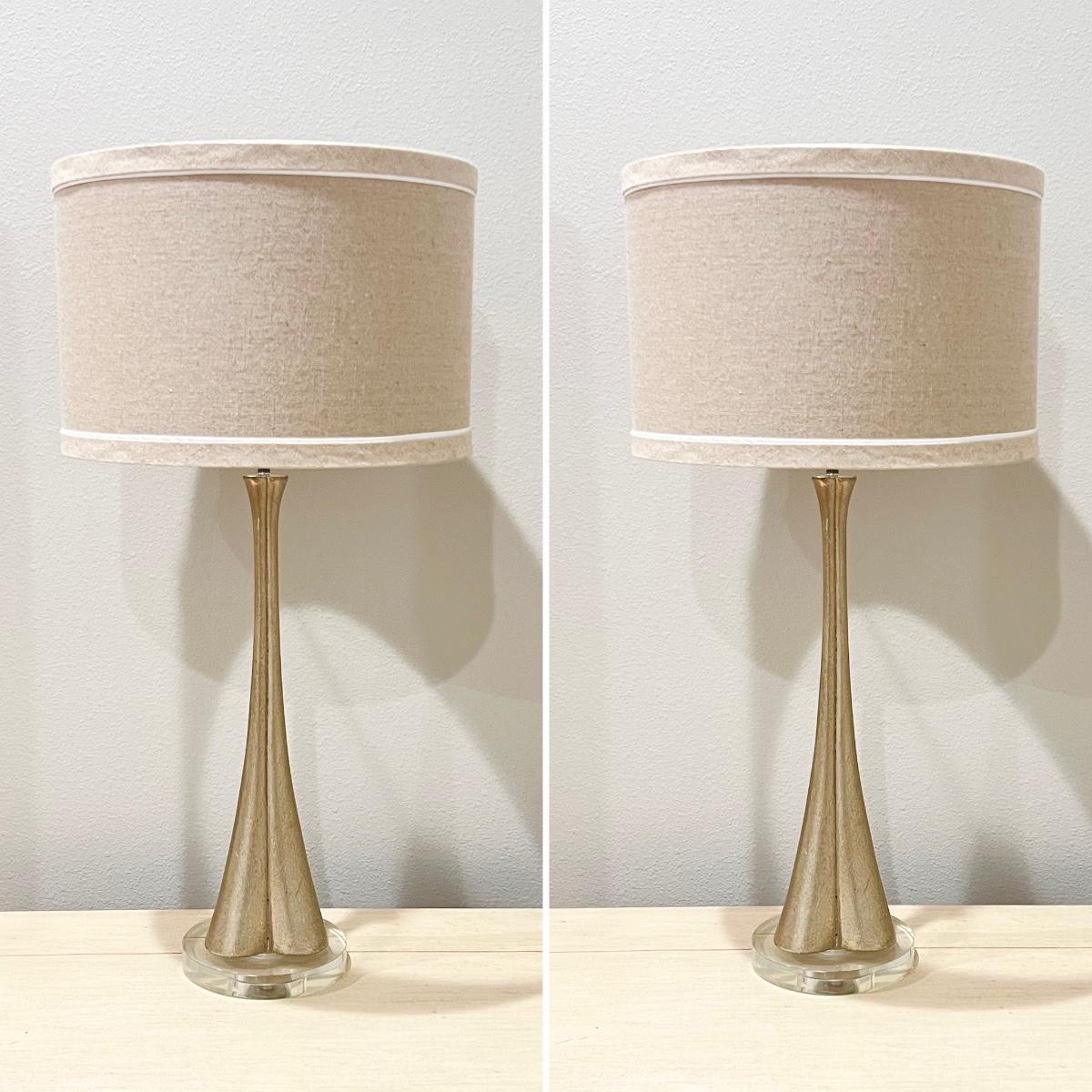 Bases are glass, the gold middle is made of a resin material ~ 31” H x 15” Round