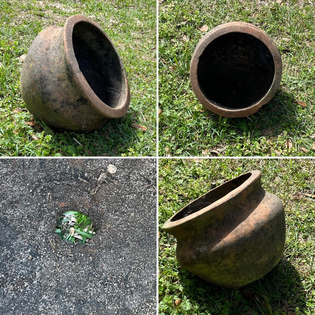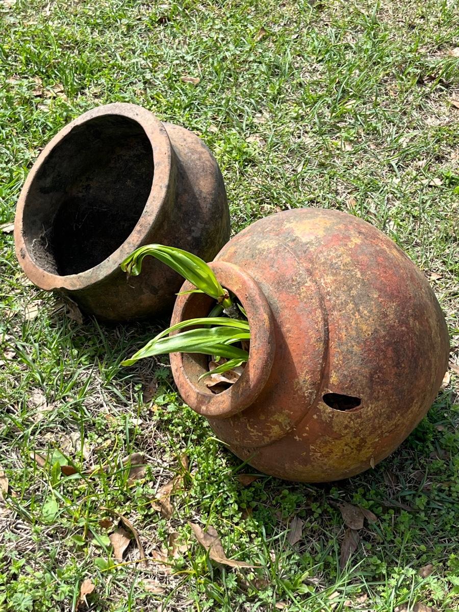 Pair (2) ~ Terracotta Side Sitting Pots