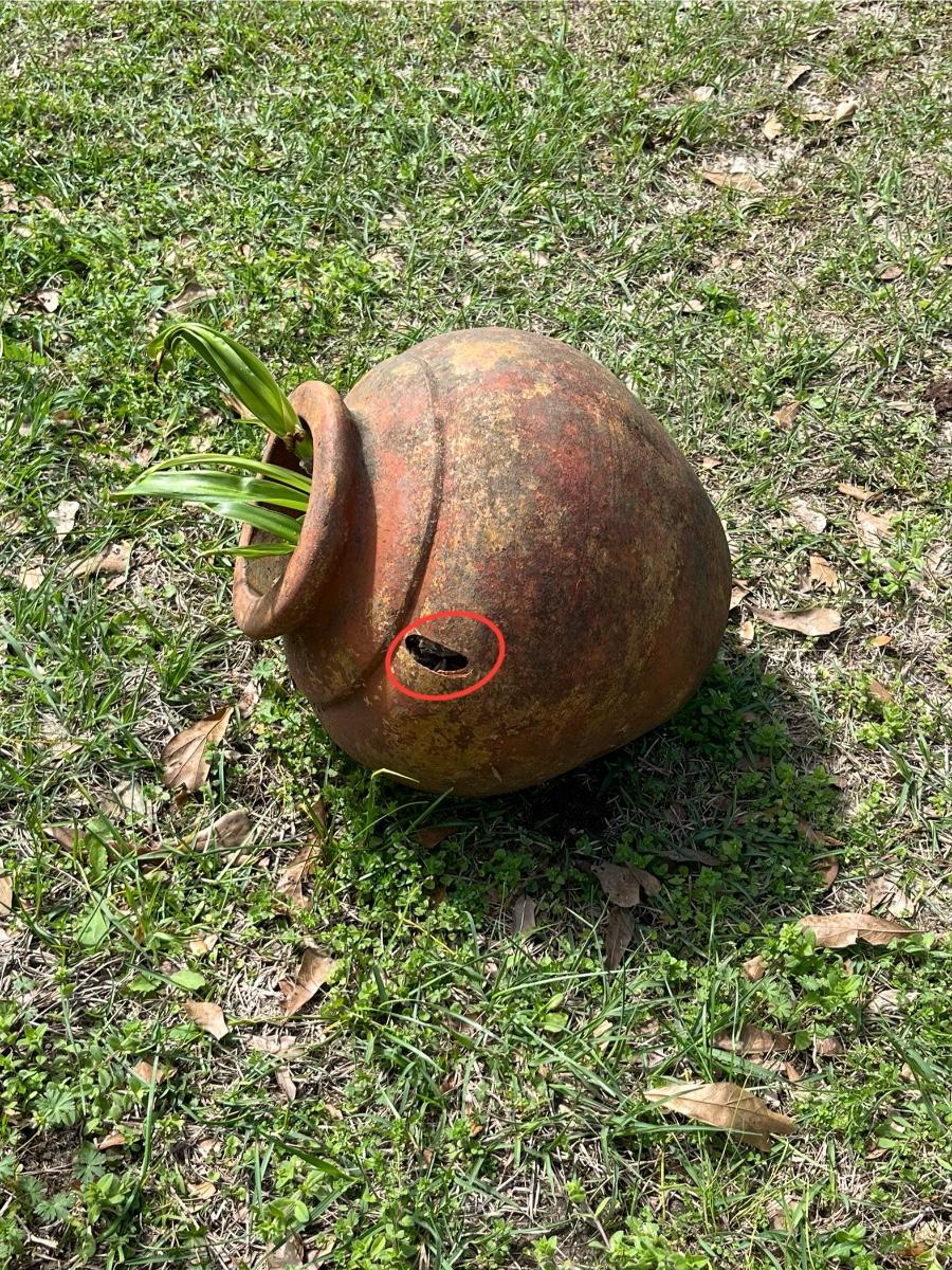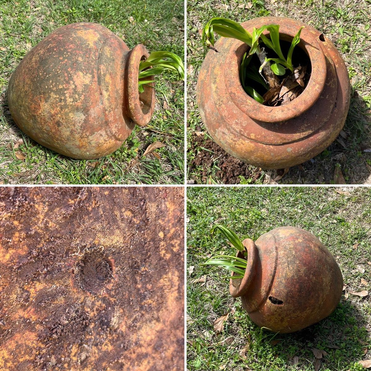 13” H x 11” Round Opening ~ 14” H x 6” Round Opening, this one has a hole in one side as see in photo