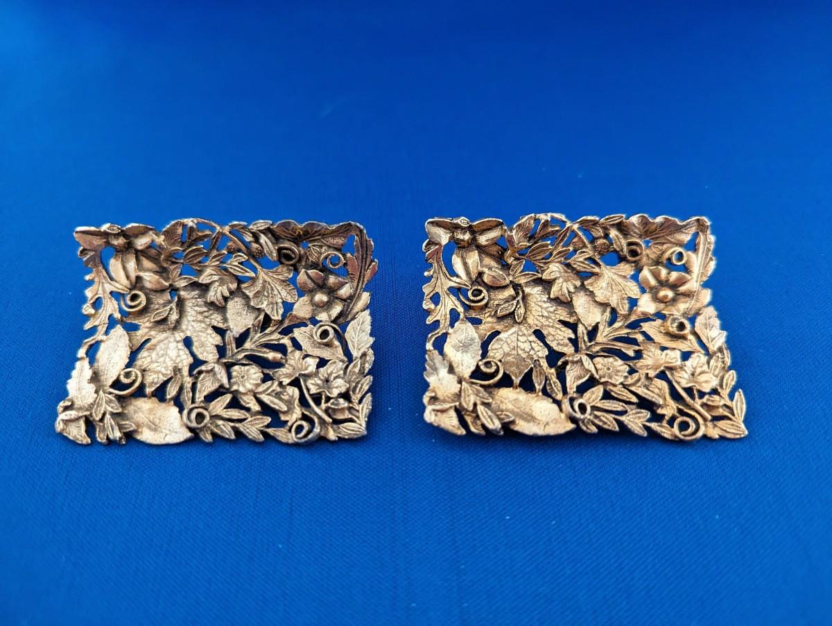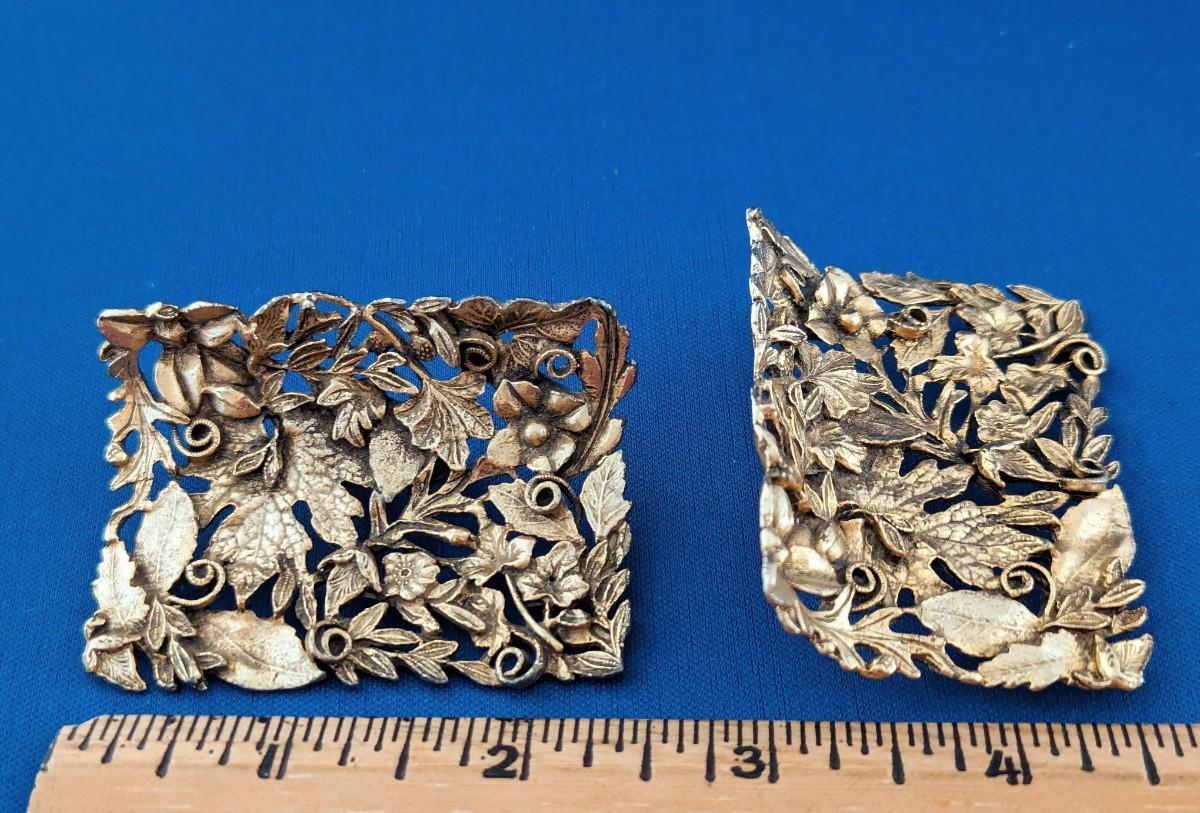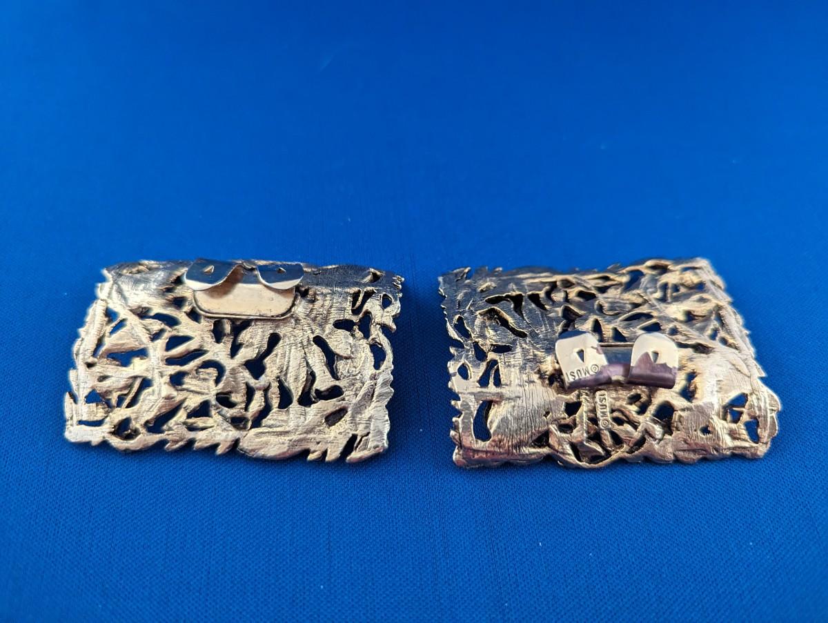 Pair (2) Vintage Signed MUSI ornate gold tone shoe clips MCM
