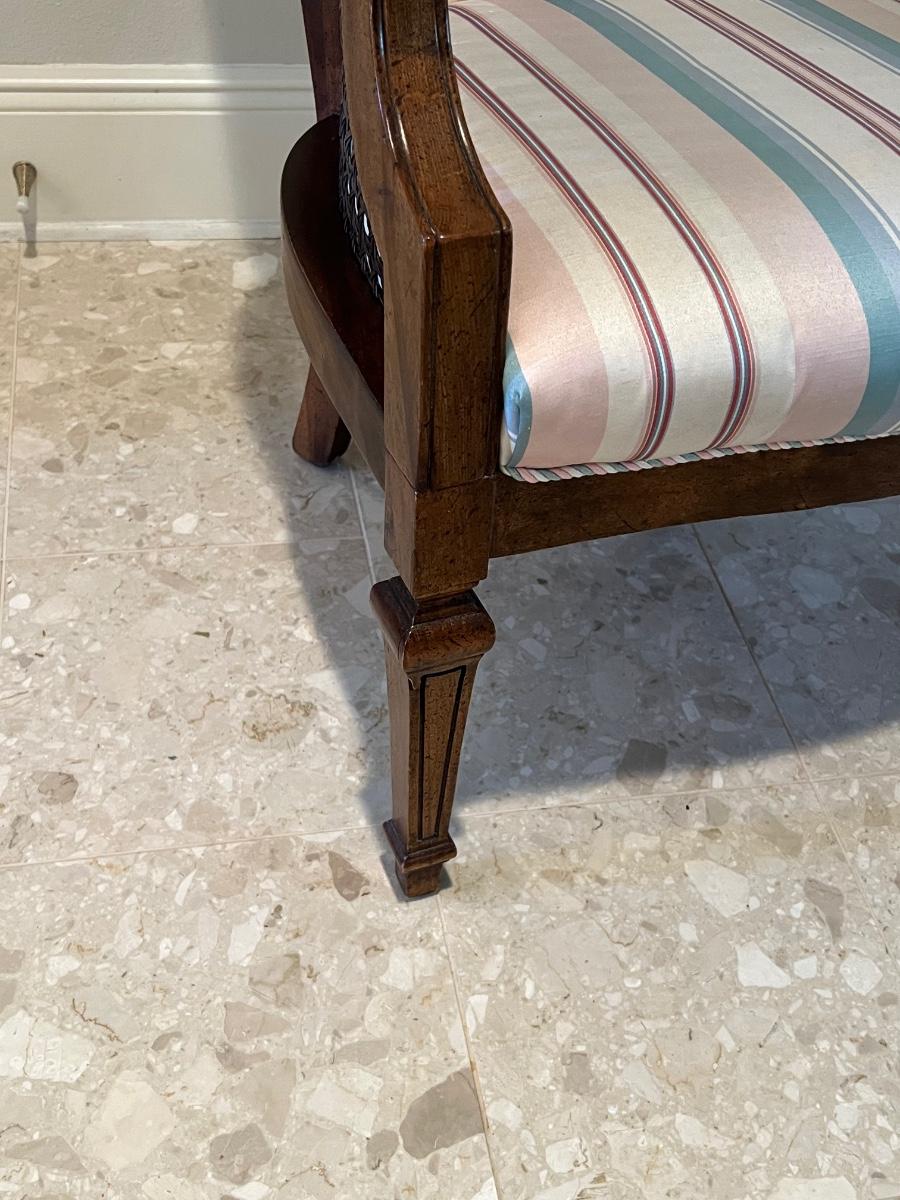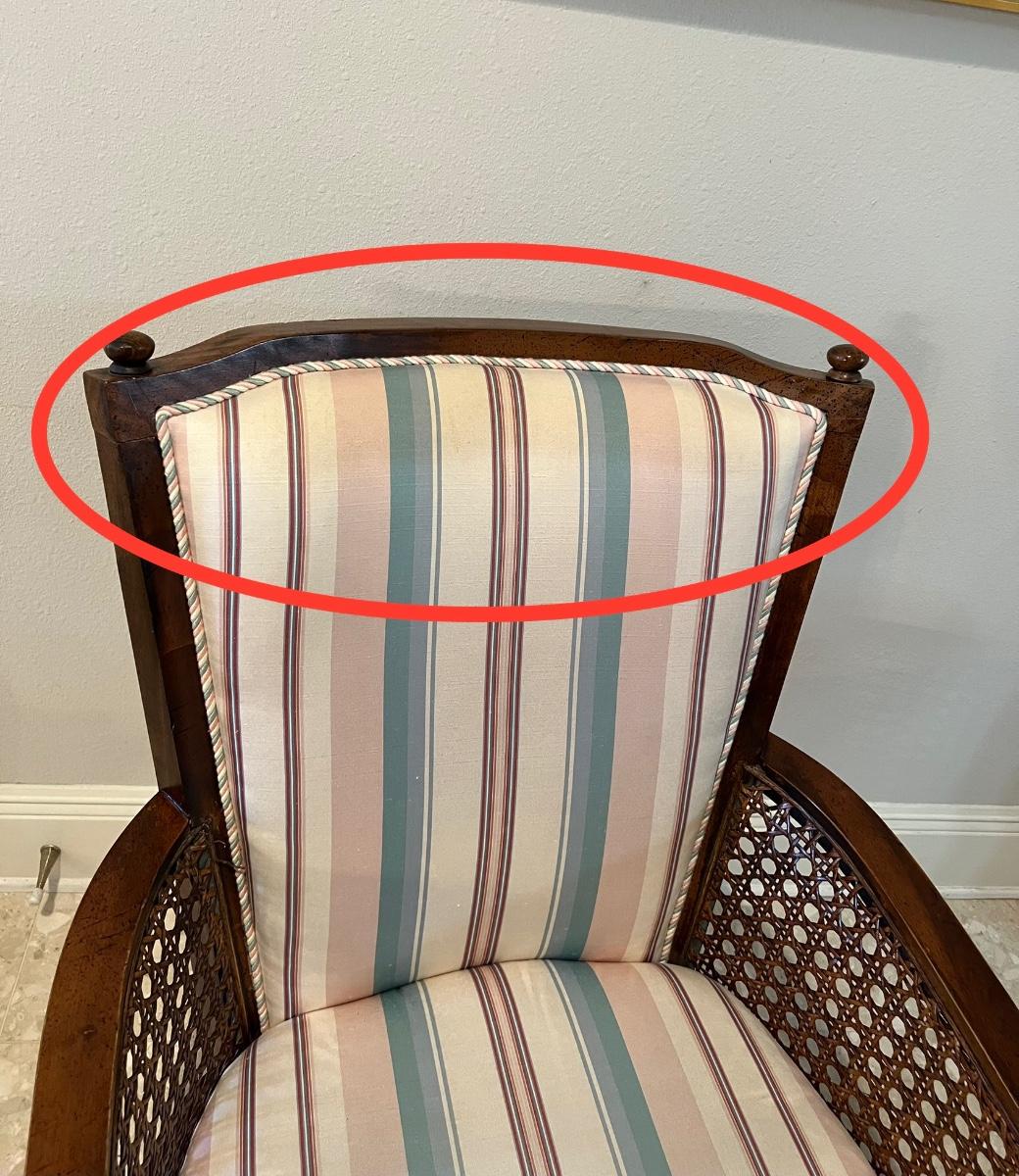 Upholstery needs to be cleaned. Has a spot on top of one of the chairs, see photos. 35.5” H x 25” W x 30” D