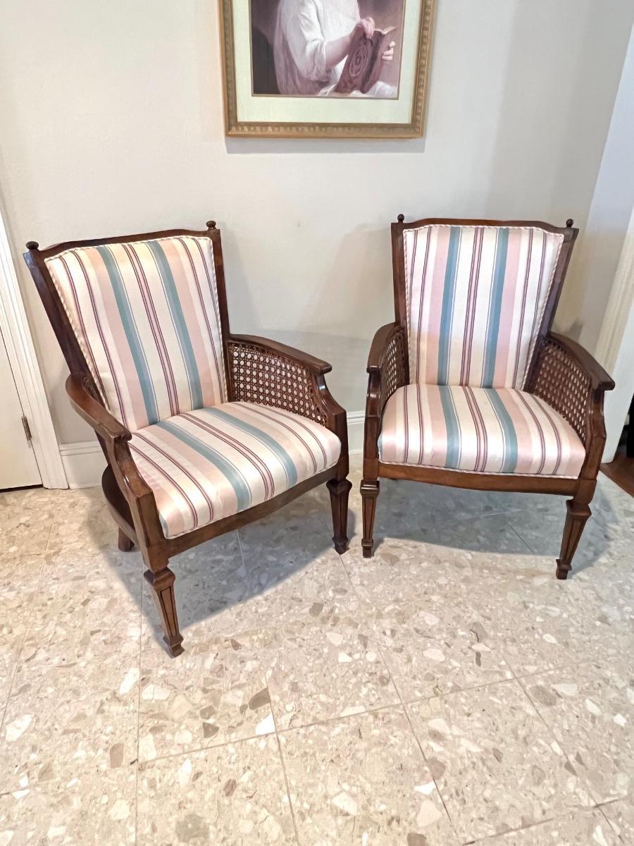 Pair (2) - Vintage Upholstered Cane Chairs ~ *Read Details