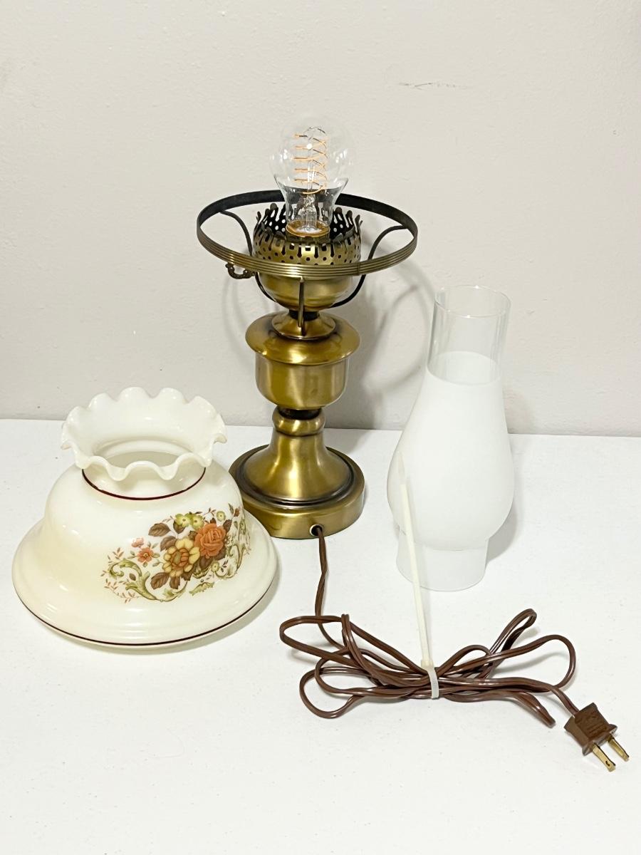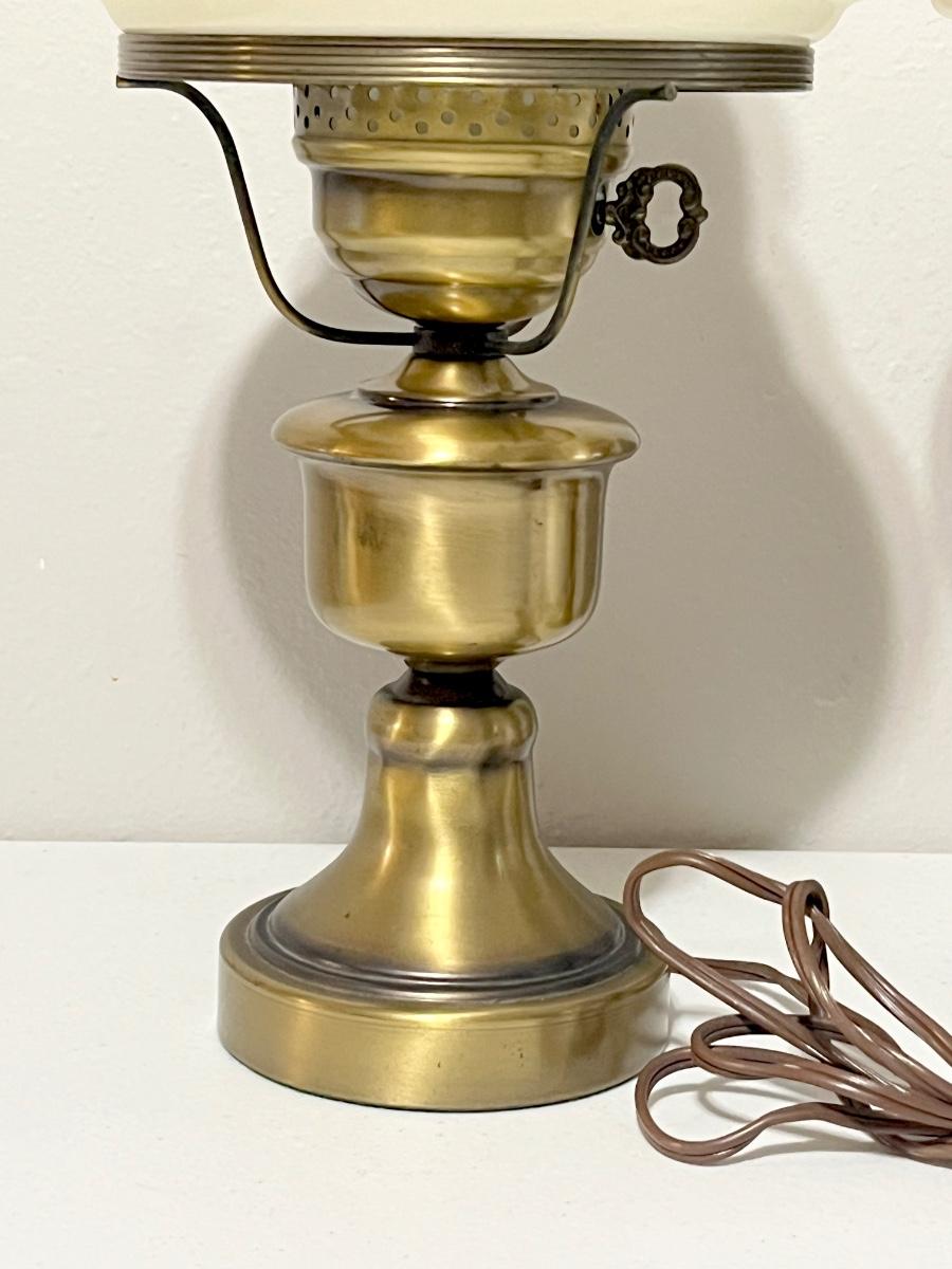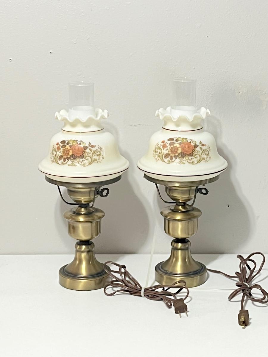 Pair (2) ~ Vtg. Glass & Brass Hurricane Lamps